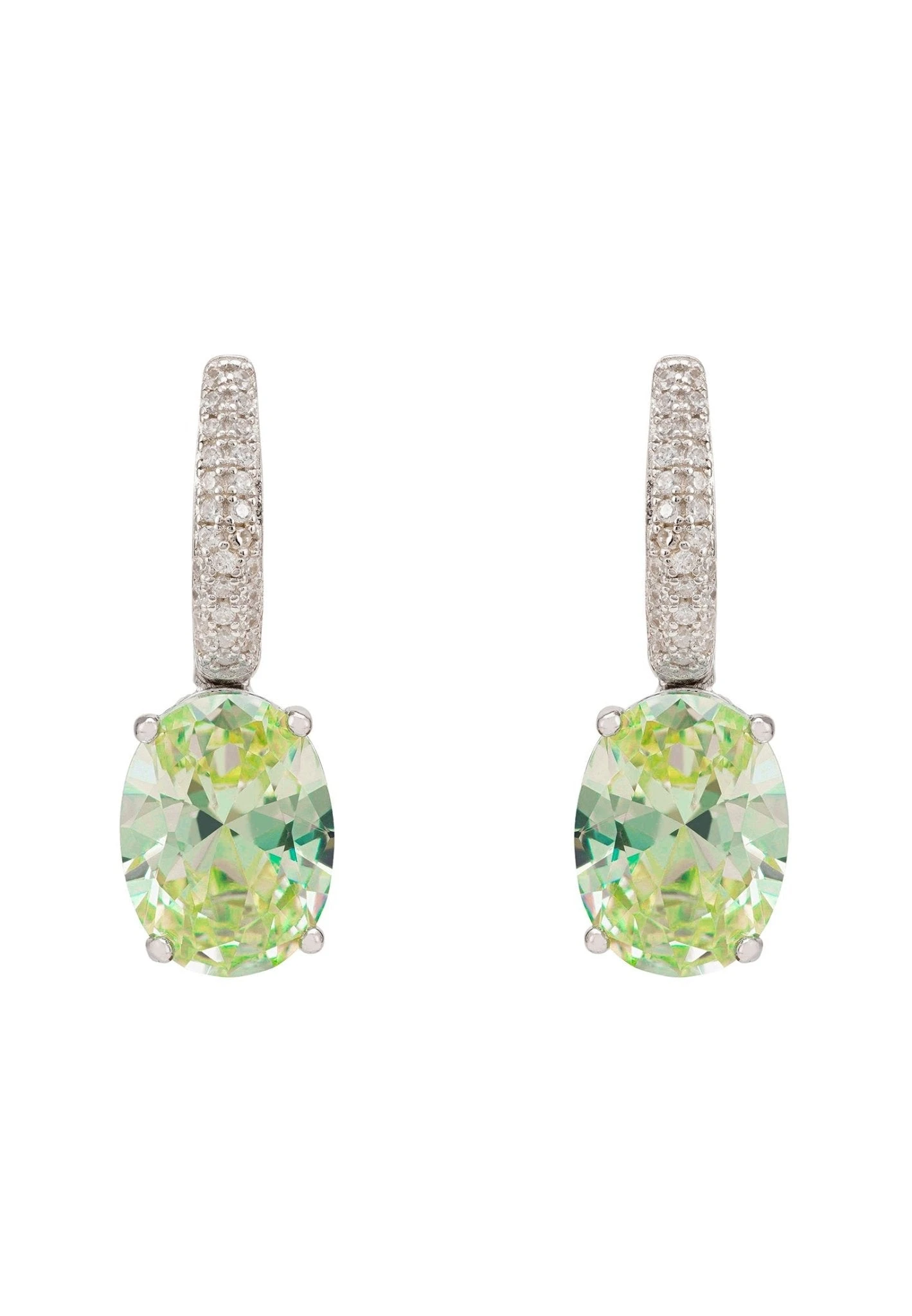 This pair of Alexandra oval drop earrings in Silver Peridot is perfect for adding an effortless touch of elegance and flair to your outfit. Handcrafted from 925 sterling silver and featuring a lab-created Peridot, these earrings are distinctive and will turn heads wherever you go. With a simple and secure latch closure embellished with sparkling simulated diamonds, these earrings are comfortable to wear and easy to apply and remove.