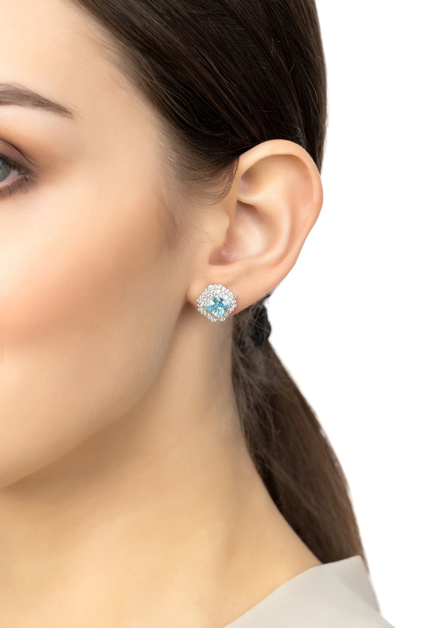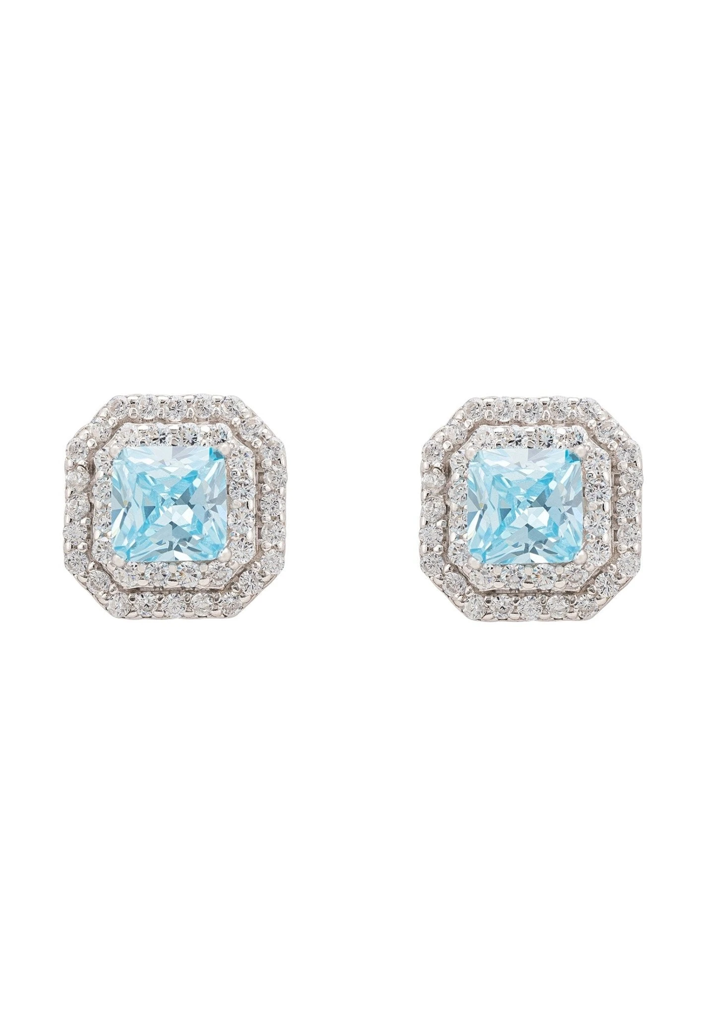 These Anastasia Stud Earrings Silver are a must-have for any fashionista. They feature a stunning square-shaped blue topaz gemstone, surrounded by a double row of sparkling simulated diamonds.