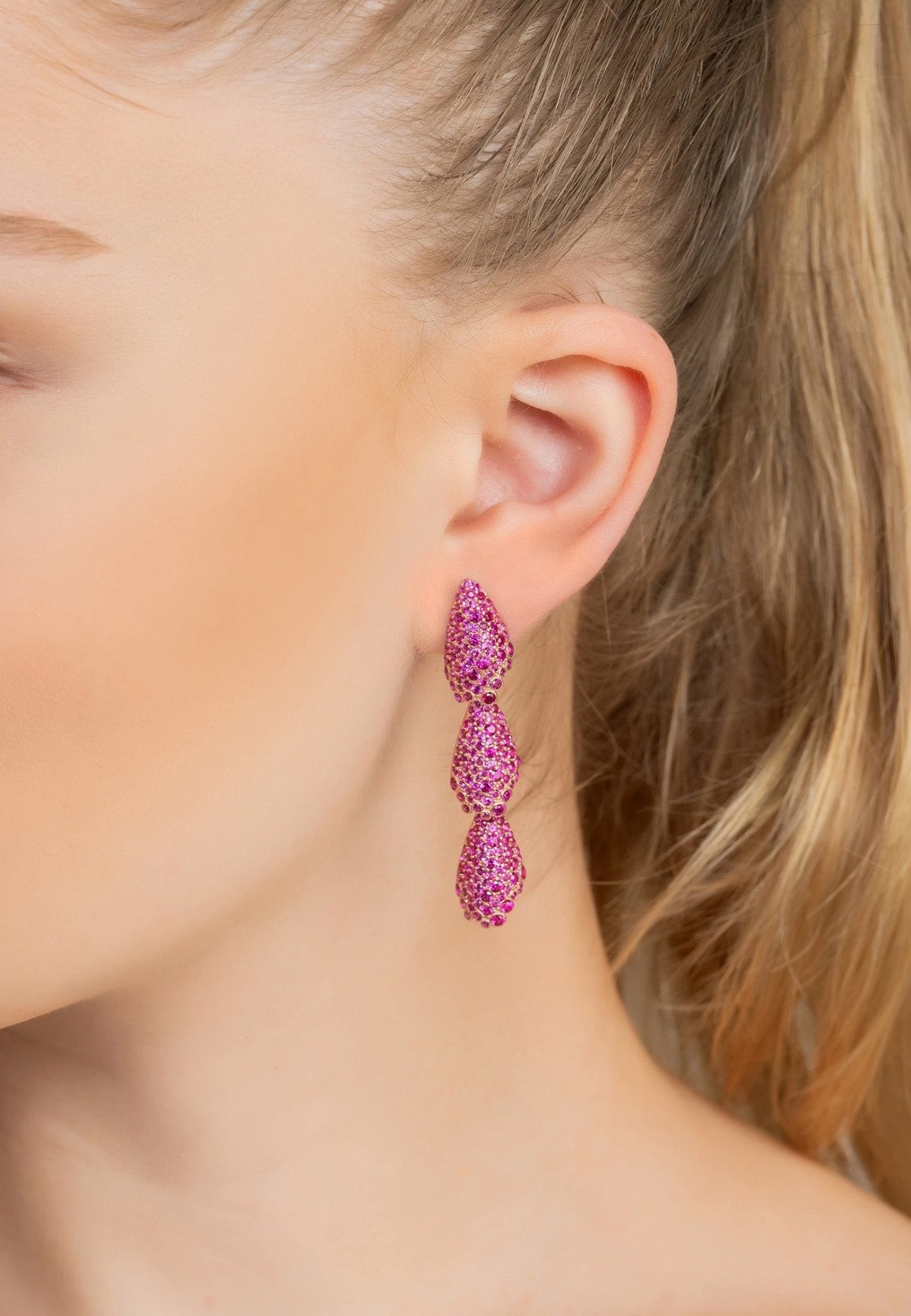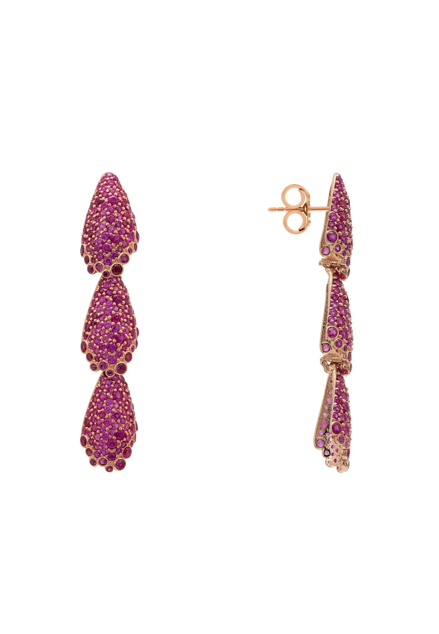 Completely covered in an abundance of ruby pink cubic zirconia, the Arabelle earrings are the perfect accessory for any occasion, from a night on the town to lunch out with the girls.