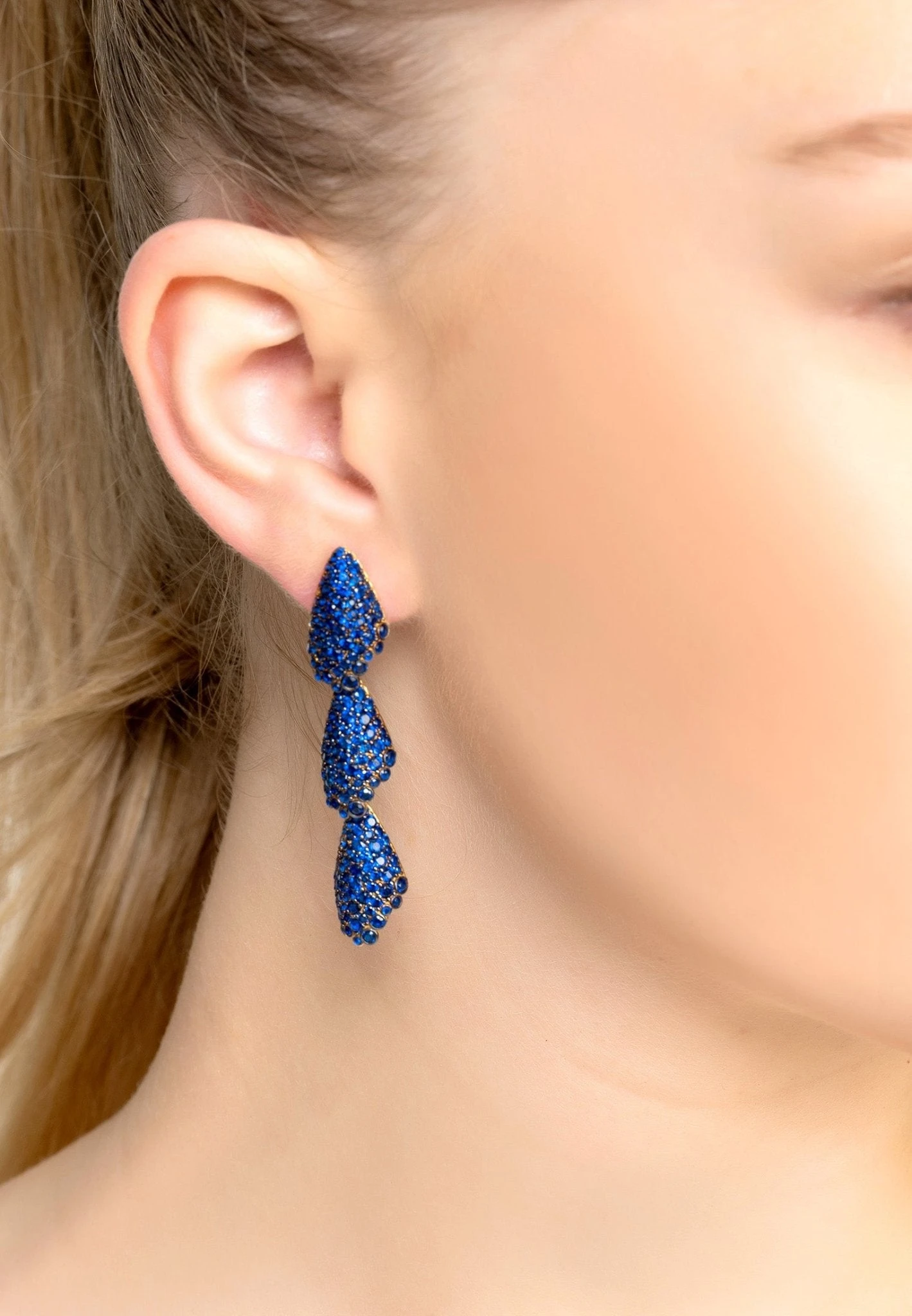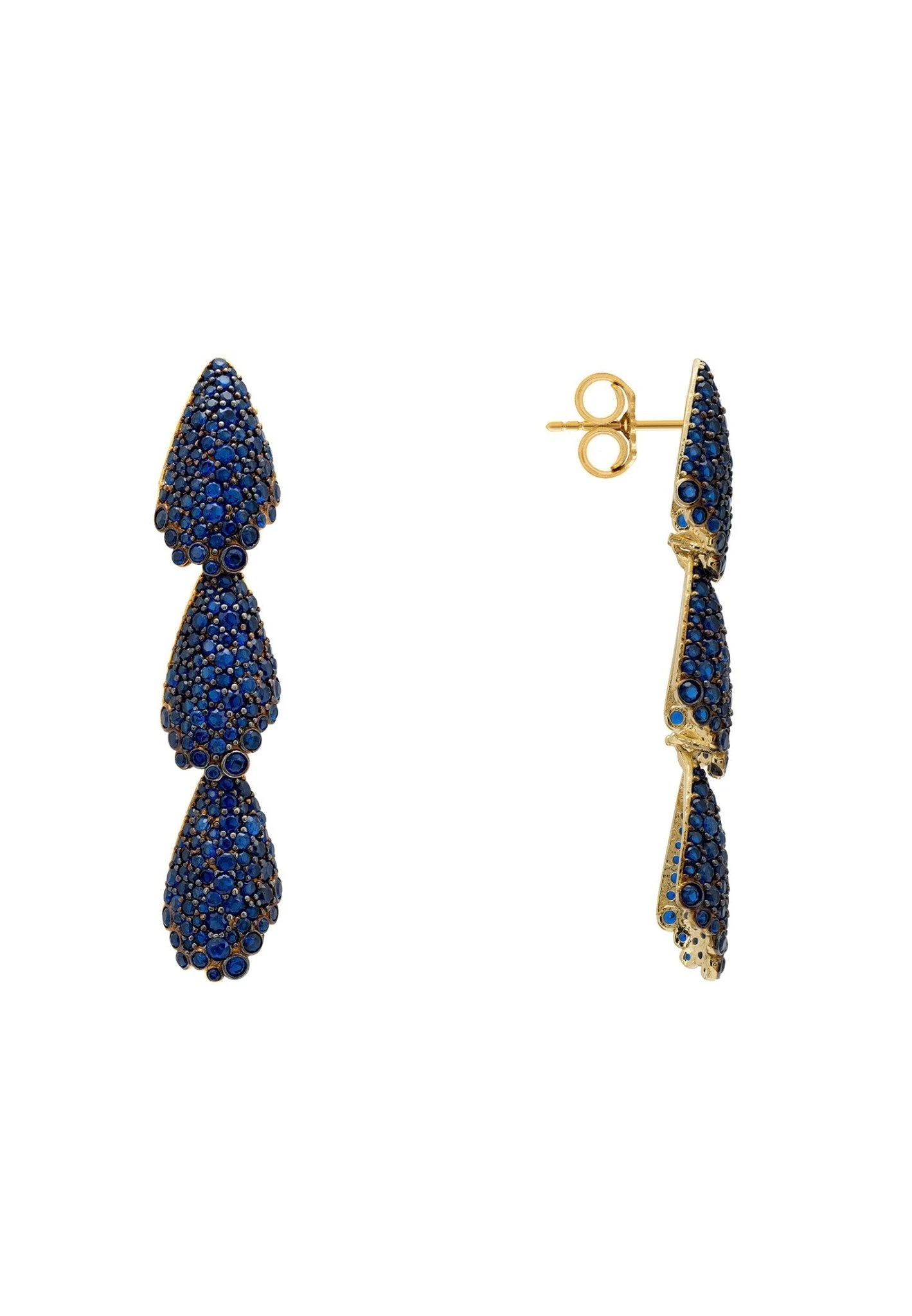 Make a bold fashion statement with our striking Arabelle Sapphire Blue Earrings Gold. Showcase your style in these eye-catching earrings and be the star of any event!