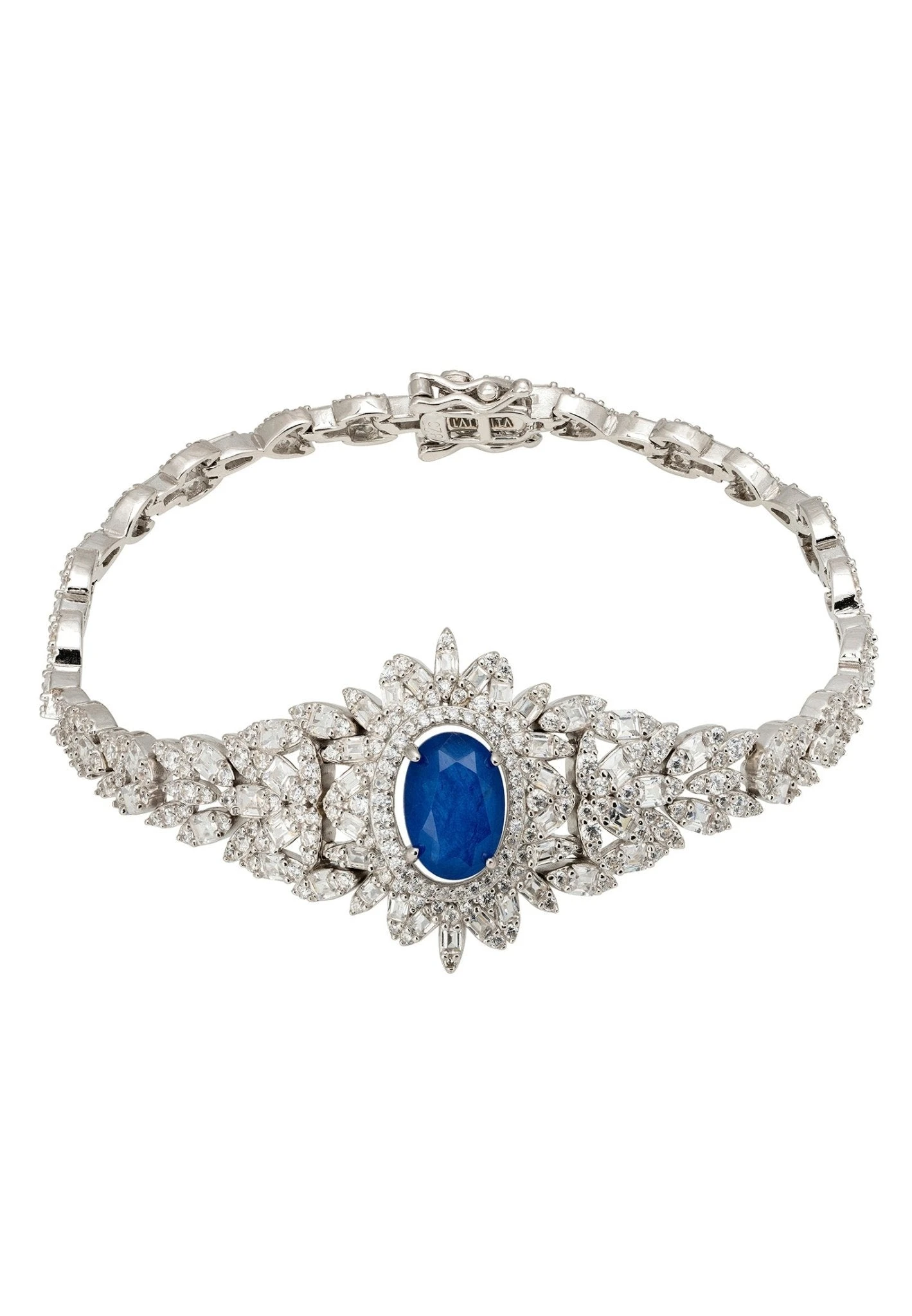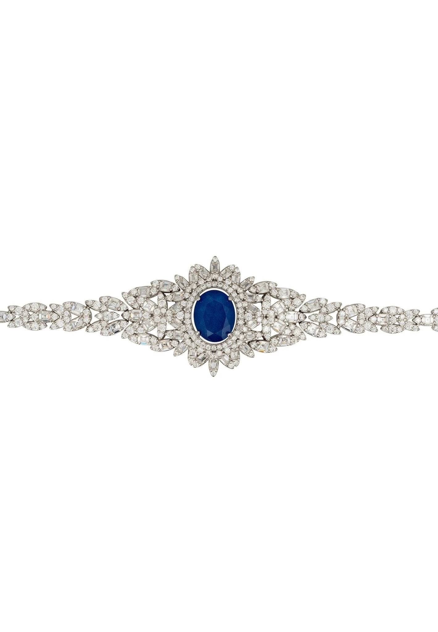 Discover the Arabesque Splendor Bracelet in Sapphire and 925 Silver, where timeless elegance meets contemporary style. Centred on a lab-created oval sapphire, this bracelet features an exquisite floral-inspired design that truly captivates.