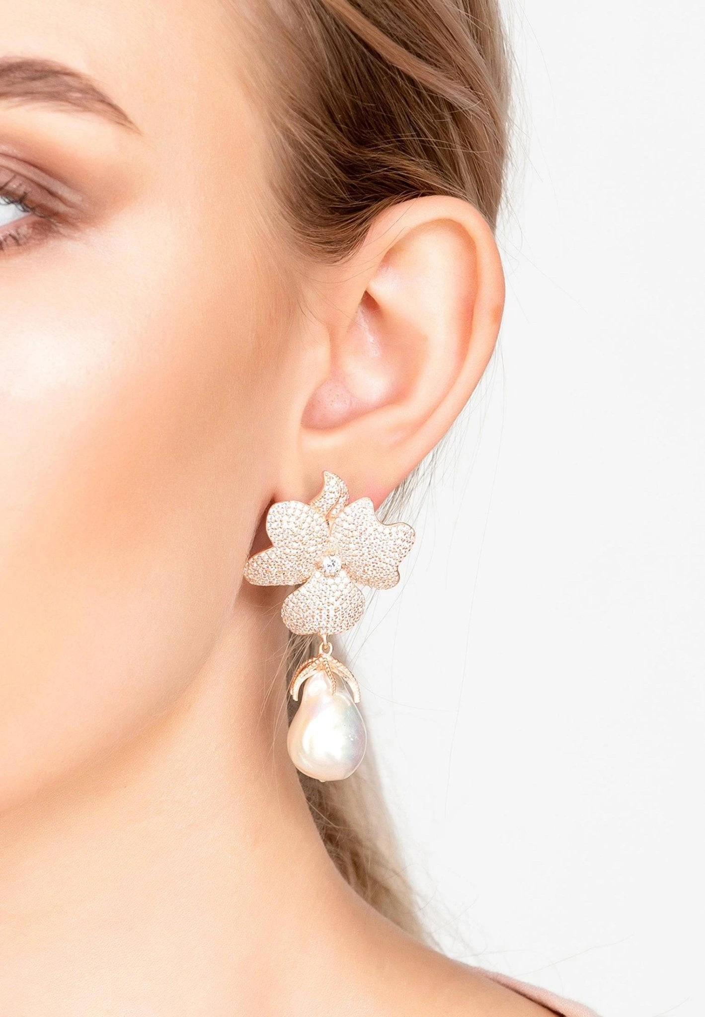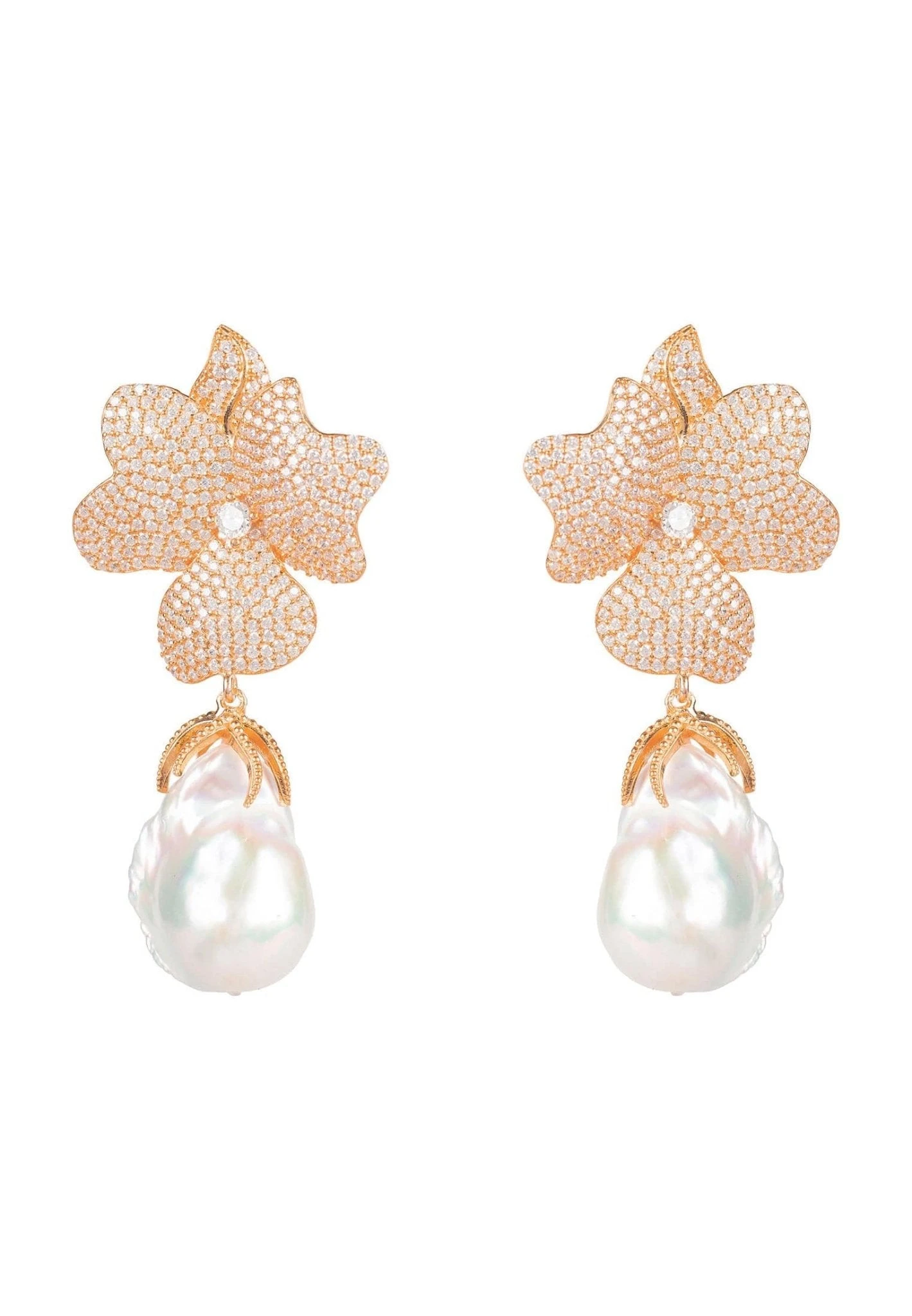The Baroque Pearl White Flower Drop Earrings are the perfect accessory for a bride-to-be. Combining the romance of flowers and the purity of pearls, the Baroque Pearl White Flower Drop Earrings will add a touch of elegance to your wedding day look.