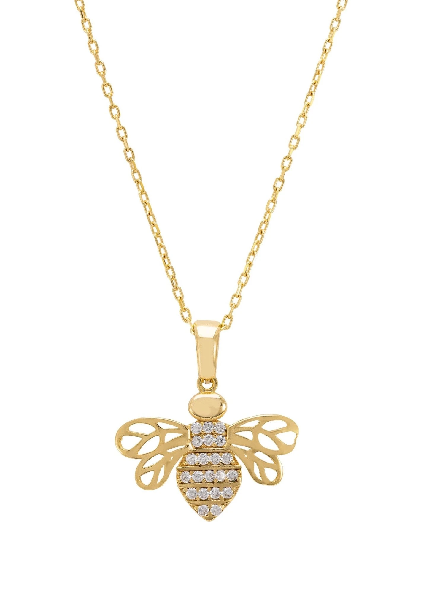 Looking for a necklace that’s as lovely as it is unique? Then check out our Bees Knees Pendant Necklace! It’s crafted from 925 sterling silver and dipped in 22ct gold, with a delicate bee motif that’s sure to turn heads. The body of the bee is adorned with cubic zirconia, and the wings are open work metallic – so pretty!