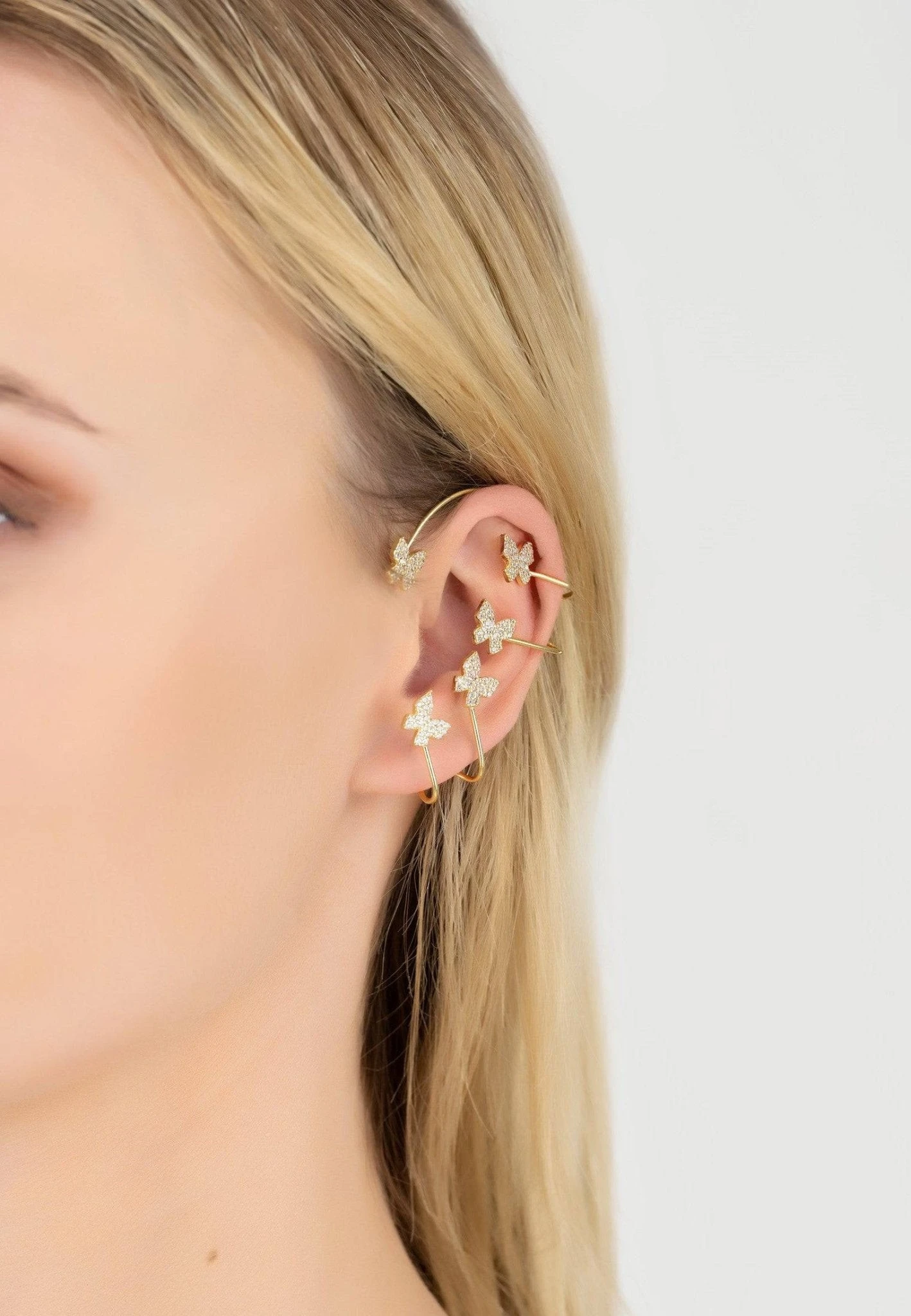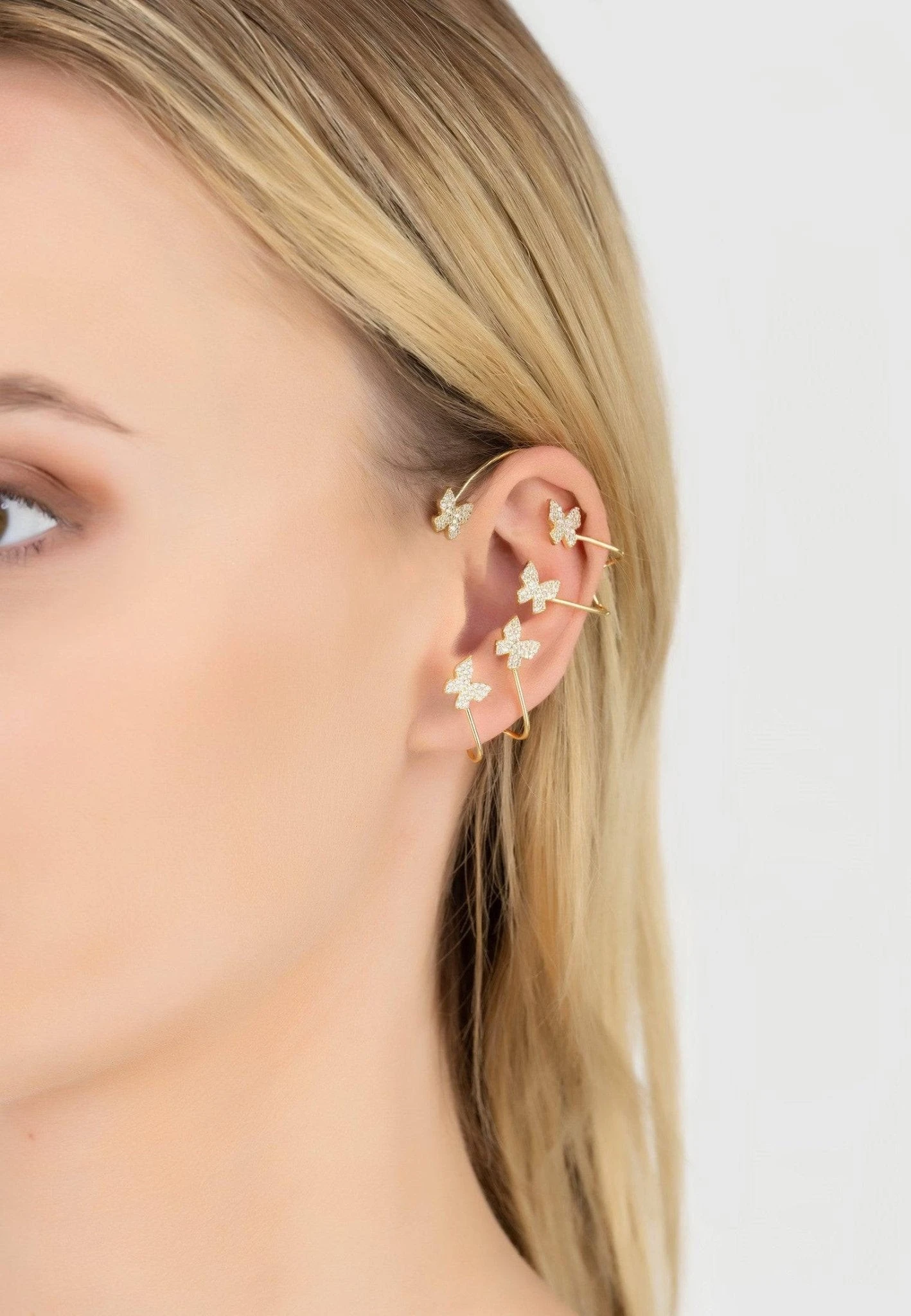 Worn so that the butterflies appear to have taken flight and landed beautifully on the ear. The five butterflies are adorned with sparkling zirconia.