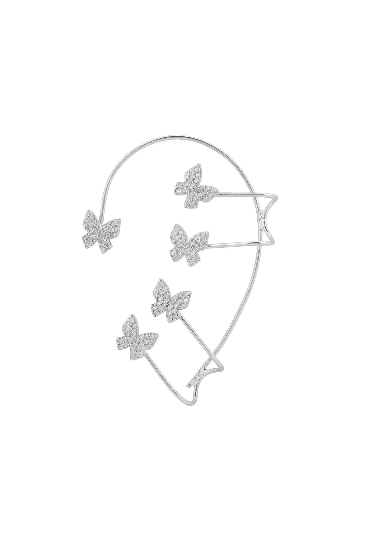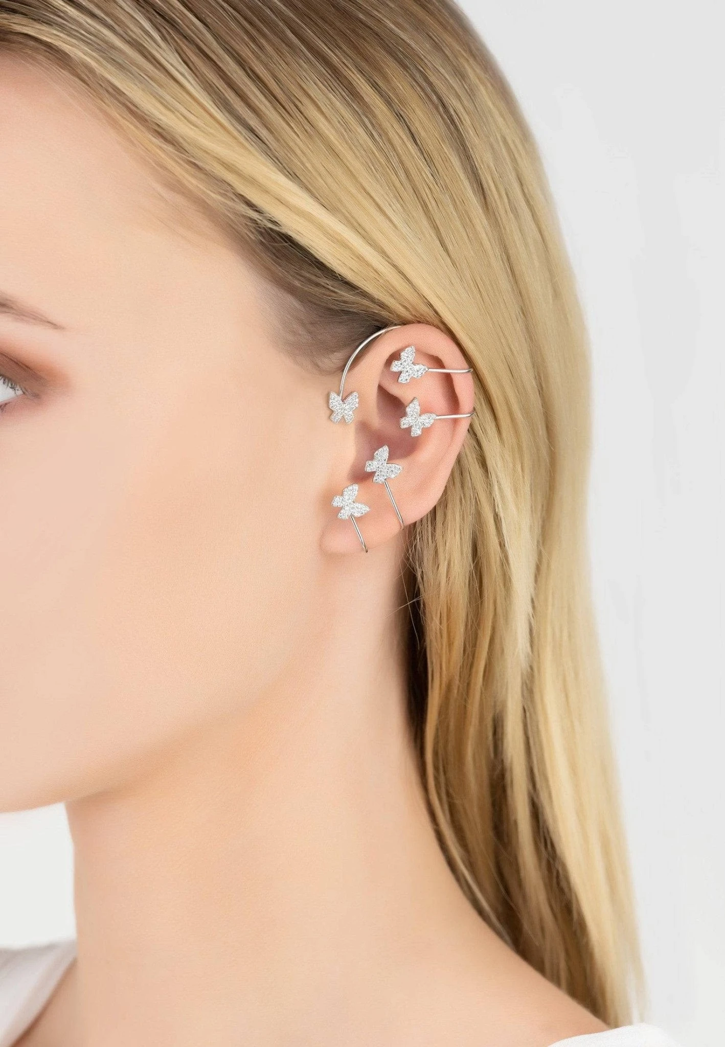 Worn so that the butterflies appear to have taken flight and landed beautifully on the ear. The five butterflies are adorned with sparkling zirconia.