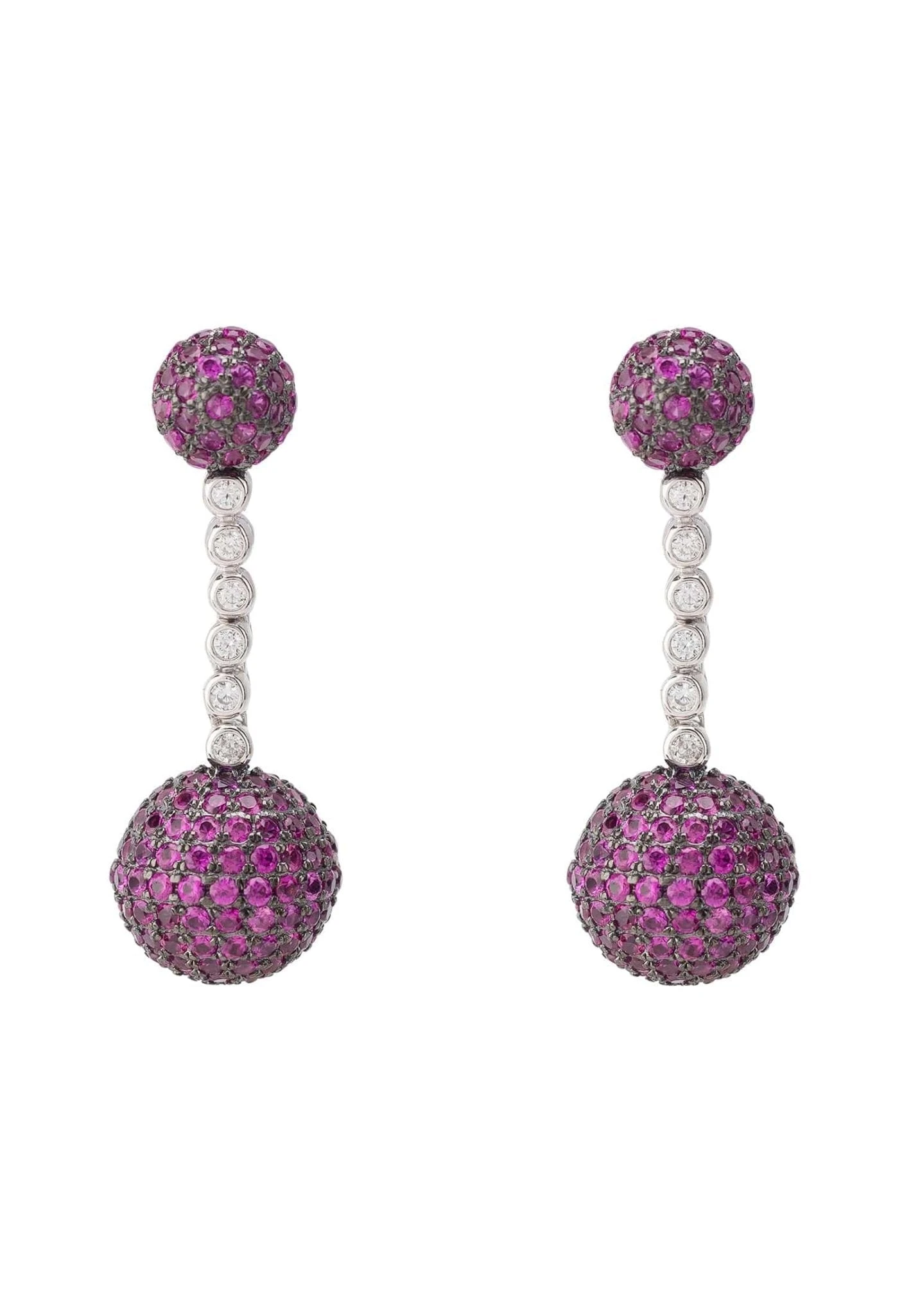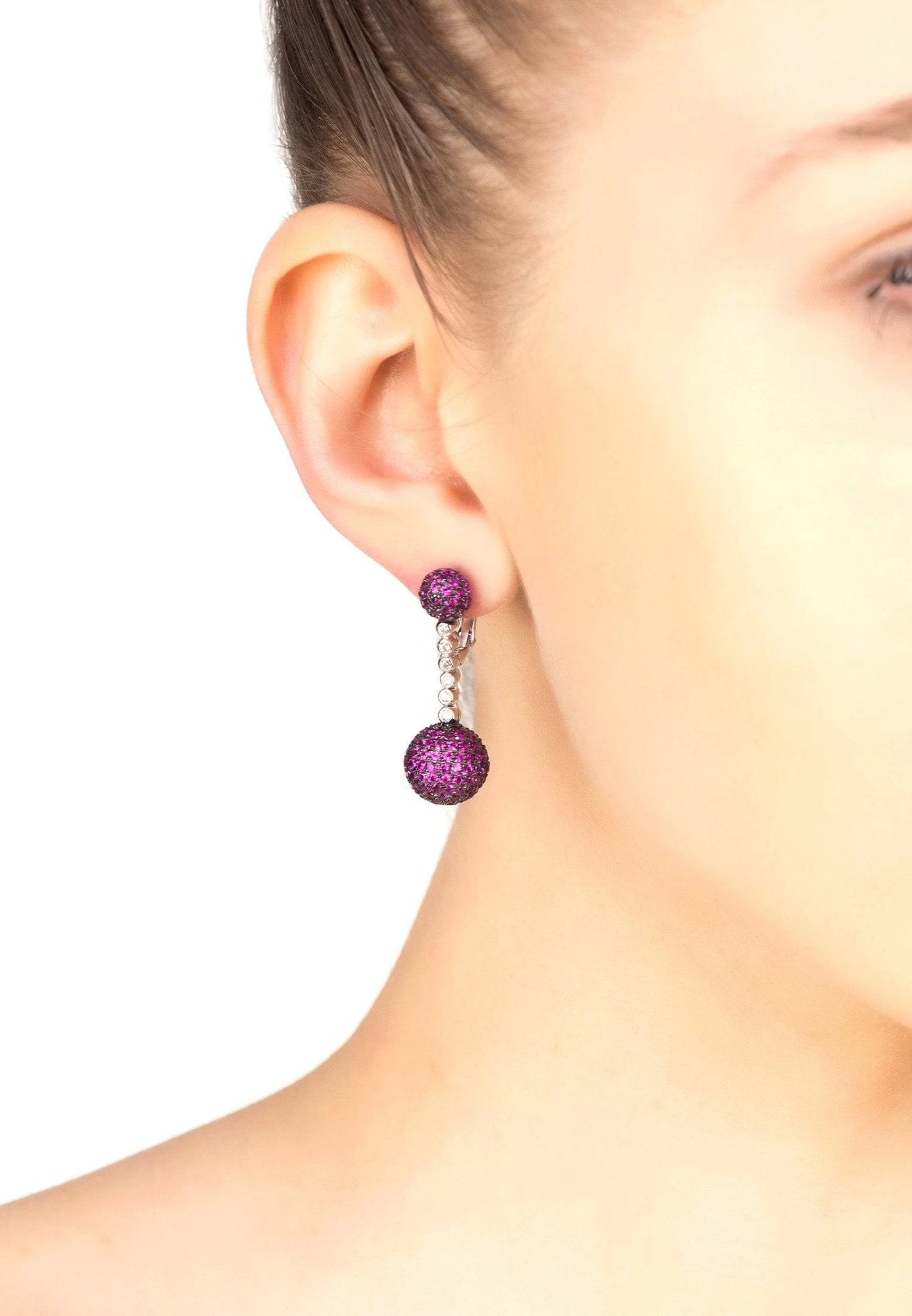 Designed as a brilliant-cut three dimensional sphere shaped drop, suspended from a smaller sphere shaped top, separated by a row of six clear white zirconia to create some movement for the wearer. These striking earrings feature a vast array of sparkling zirconia set in 925 sterling silver to add a pop of colour to any outfit.