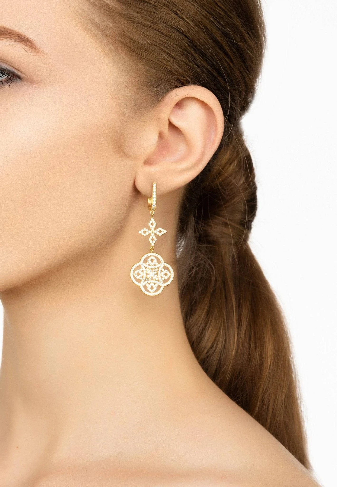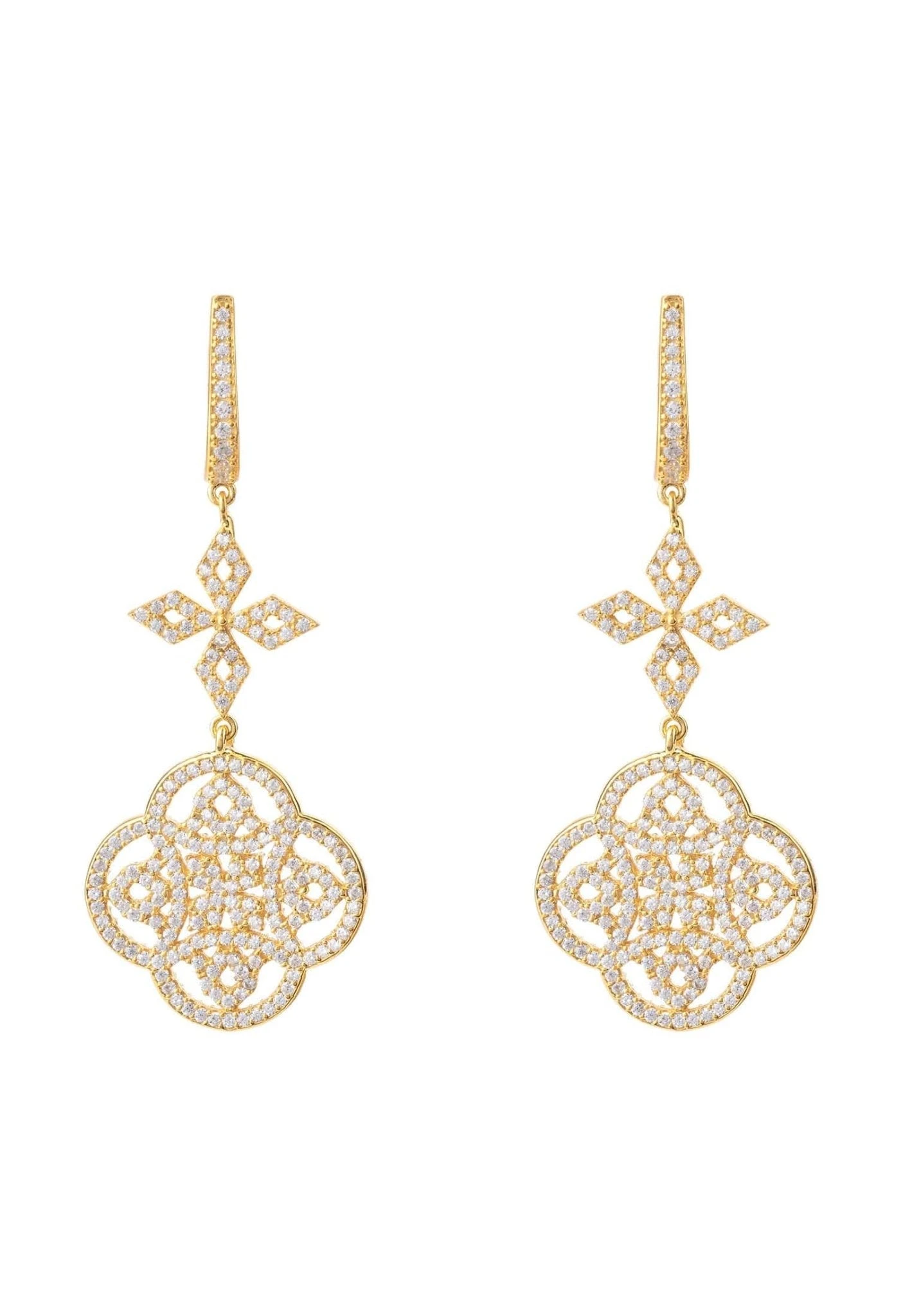 Hanging at a length of 6cm, with a width of 2.3cm at the widest point and weighing 11.4grams, these gorgeous earrings will bring your outfit or special occasion up a notch of elegance. The micro pave white cubic zirconia provide an extra dose of shimmer and glamour that takes them over the top! Perfect for weddings and celebrations, or just because they’re truly lovely. Get your piece of fine jewellery at Latelita London and feel exquisite every day!