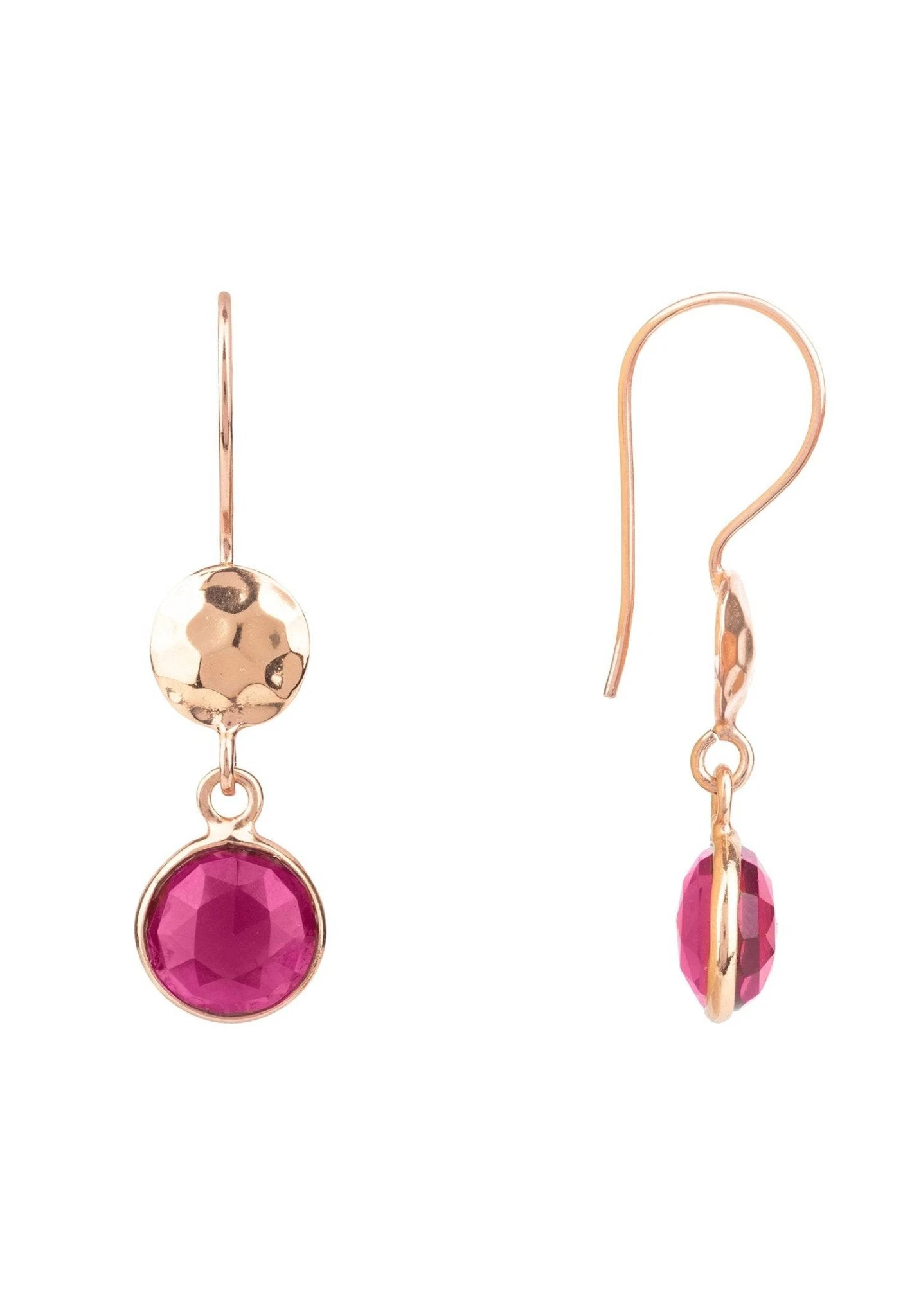 Featuring a hand hammered metallic disc and a faceted semi precious natural stone, on a fixed french hook.