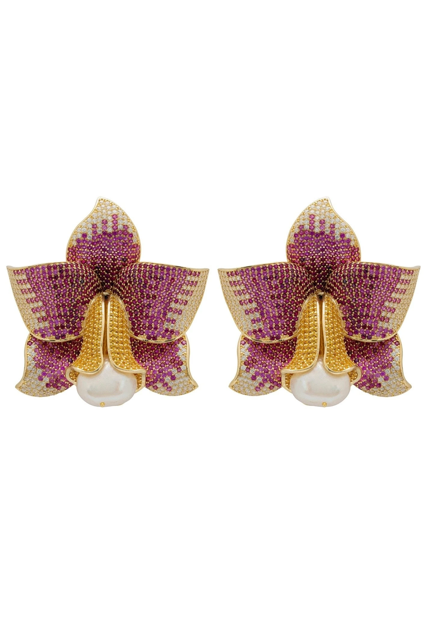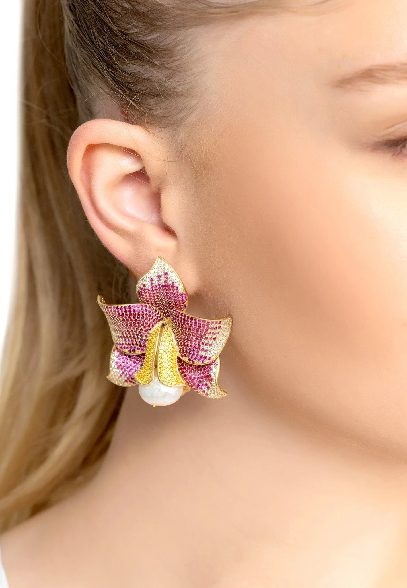 Make your look pop and add a special touch with these extraordinary Daffodil With Pearl Earrings Gold Ruby CZ! Expertly handcrafted using 925 sterling silver dipped in 22ct gold, they will make you stand out from the crowd.