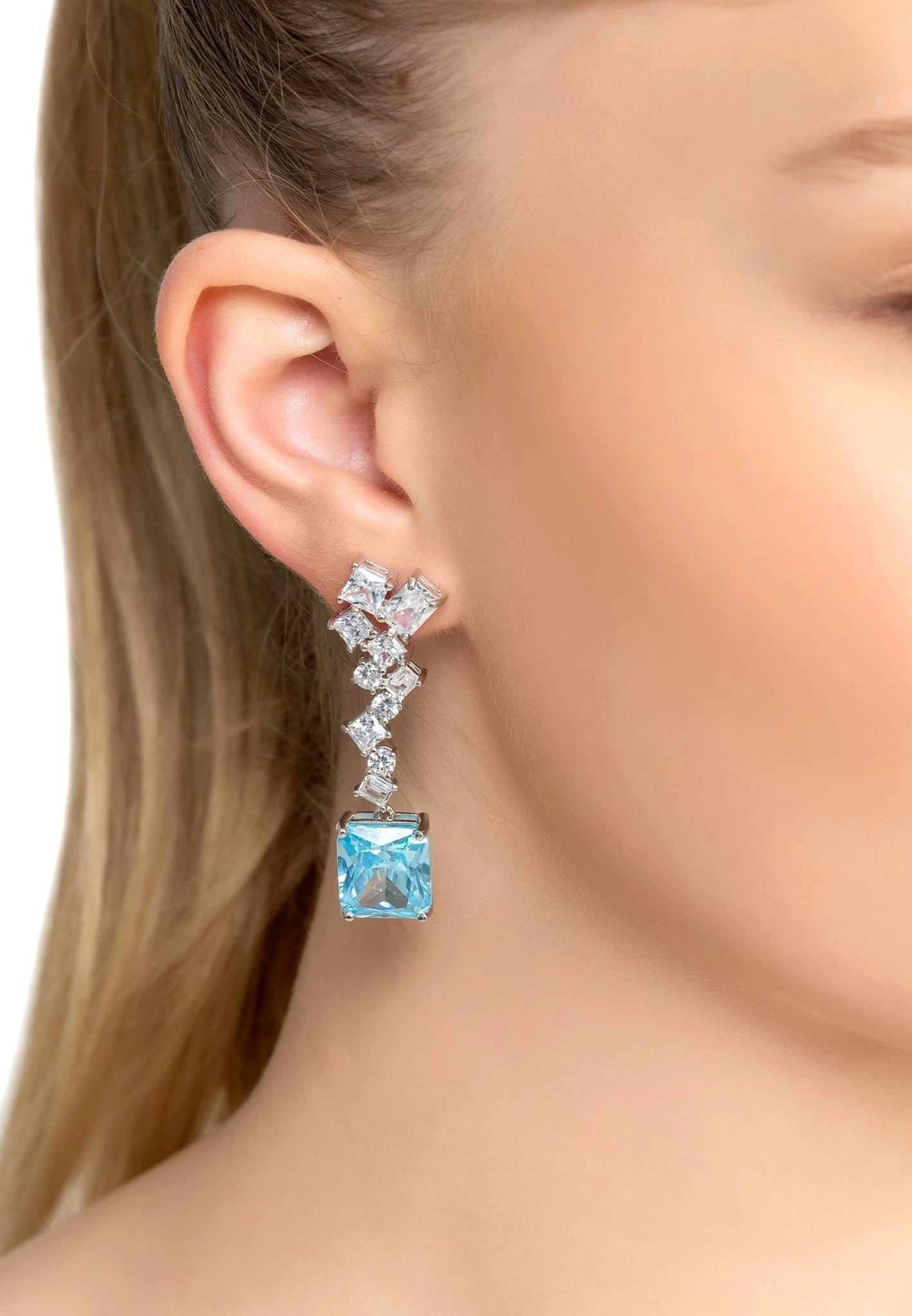 The Diana Blue Topaz Drop Earrings are perfect for when you want to add a touch of sparkle and elegance to your outfit.