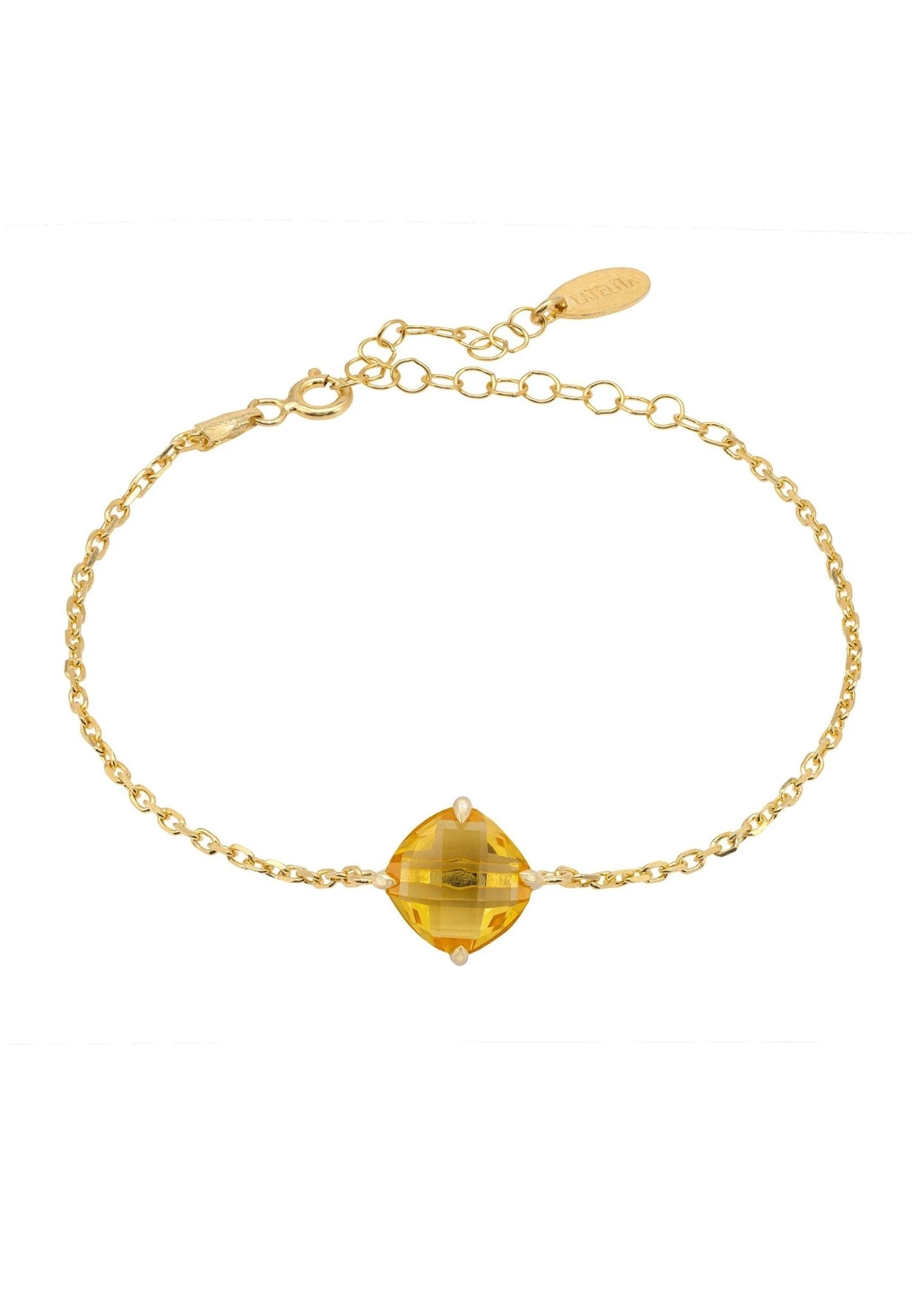 This beautiful bracelet is perfect for adding a touch of luxury to any outfit. Handcrafted with 925 sterling silver dipped in 22ct gold, it features a single Citrine gemstone set onto a chain. The simple, yet chic design makes it perfect for any occasion, and the pop of colour is sure to make a statement.