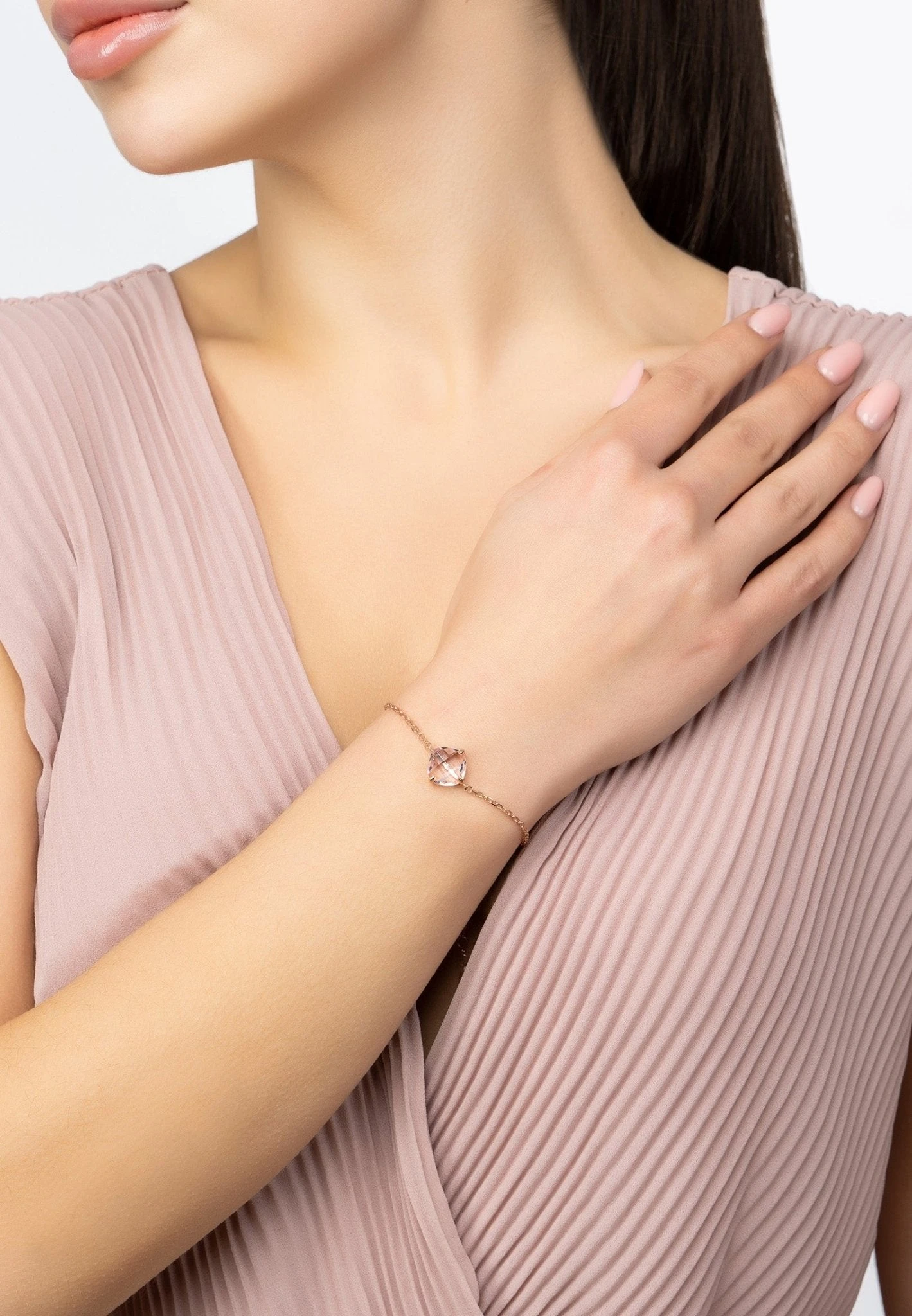The beautiful empress gemstone bracelet is perfect for adding a touch of luxury to any outfit. It is handmade with 925 sterling silver that has been dipped in 22ct rosegold and features a single rose quartz gemstone set along a chain, making it the perfect addition to your jewellery collection. The simple, yet chic design makes it perfect for any occasion, and the pop of colour is sure to make a statement.