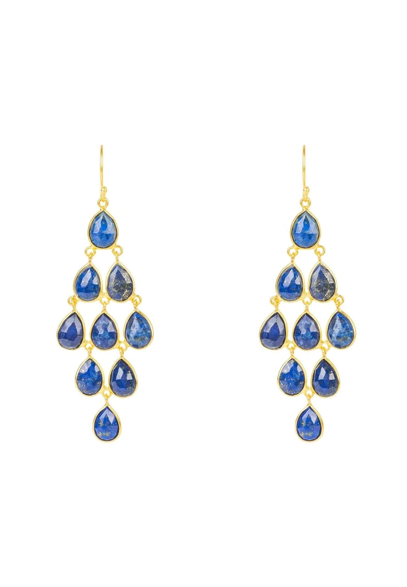 If you’re looking for an exquisite and attention-grabbing statement piece to add to your jewellery collection, look no further than the Erviola Gemstone Cascade Earrings Gold Lapis Lazuli. This eye-catching earring features nine intricately linked blue teardrop-shaped gemstones that hang from a polished French curved hook that enhances the look of the earring by adding an elegant dangle.