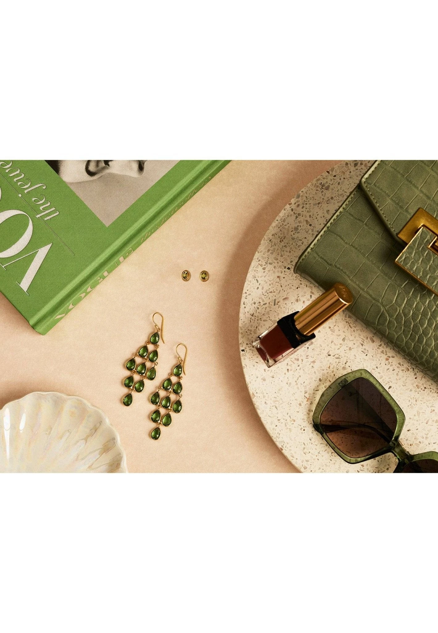 Looking for something that stands out and matches your sense of style? Look no further than the Erviola Gemstone Cascade Earrings! This elegant and sophisticated accessory is the perfect way to complete your outfit. It features 925 sterling silver dipped in 22ct gold, each linked with nine teardrop-shaped gemstones for a look that’s unique and eye-catching. Plus, it’s incredibly light to wear – so you can have all the sparkle without any of the weight!Â
