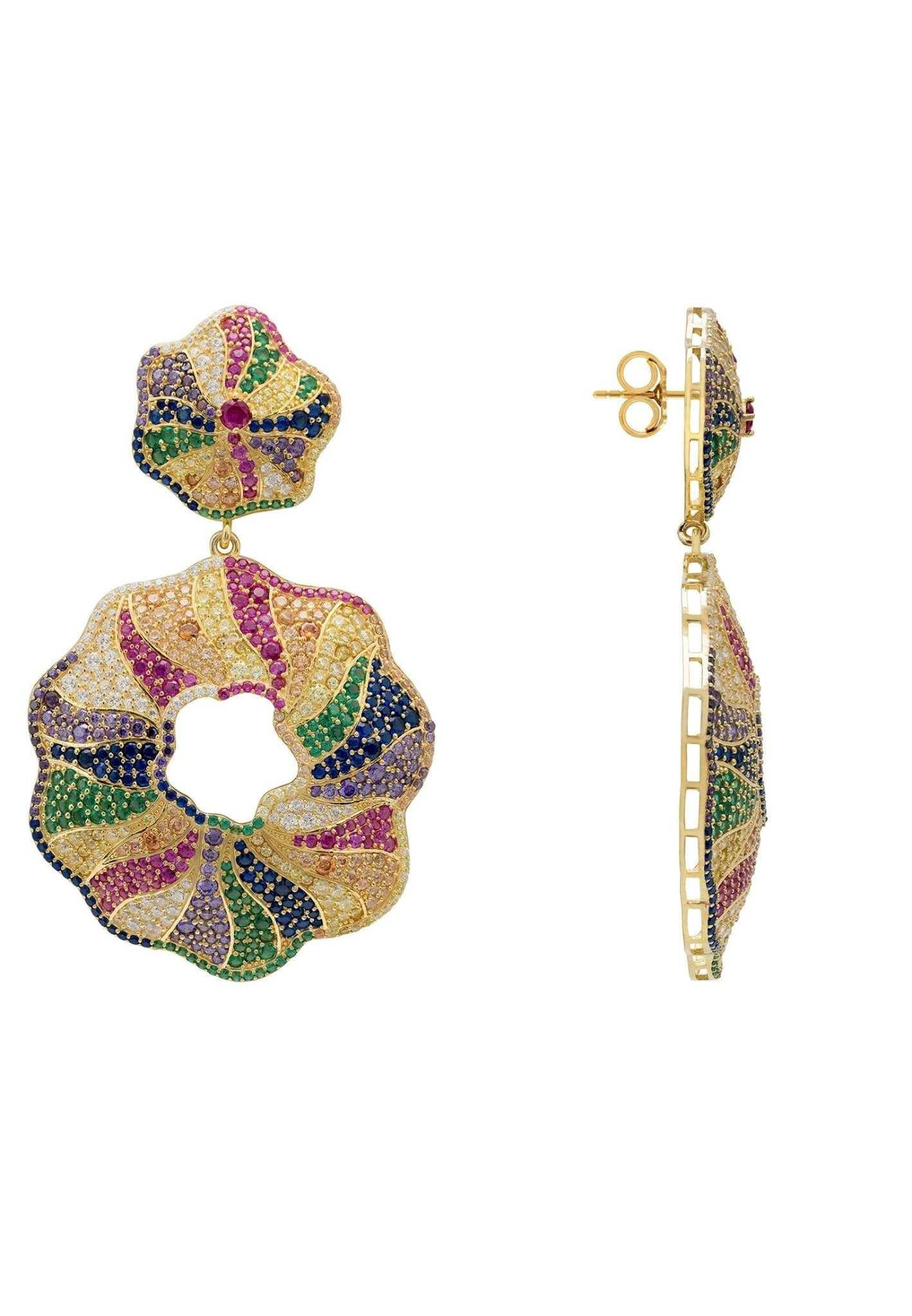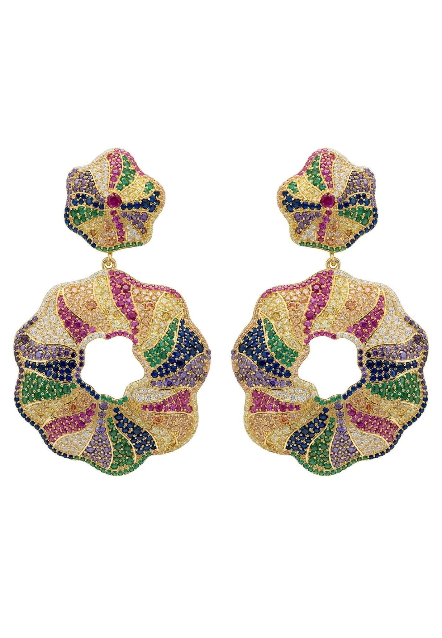 Introduce glamour and colour to your life with Esmeralda Multi-Coloured Statement Drop Earrings Gold!