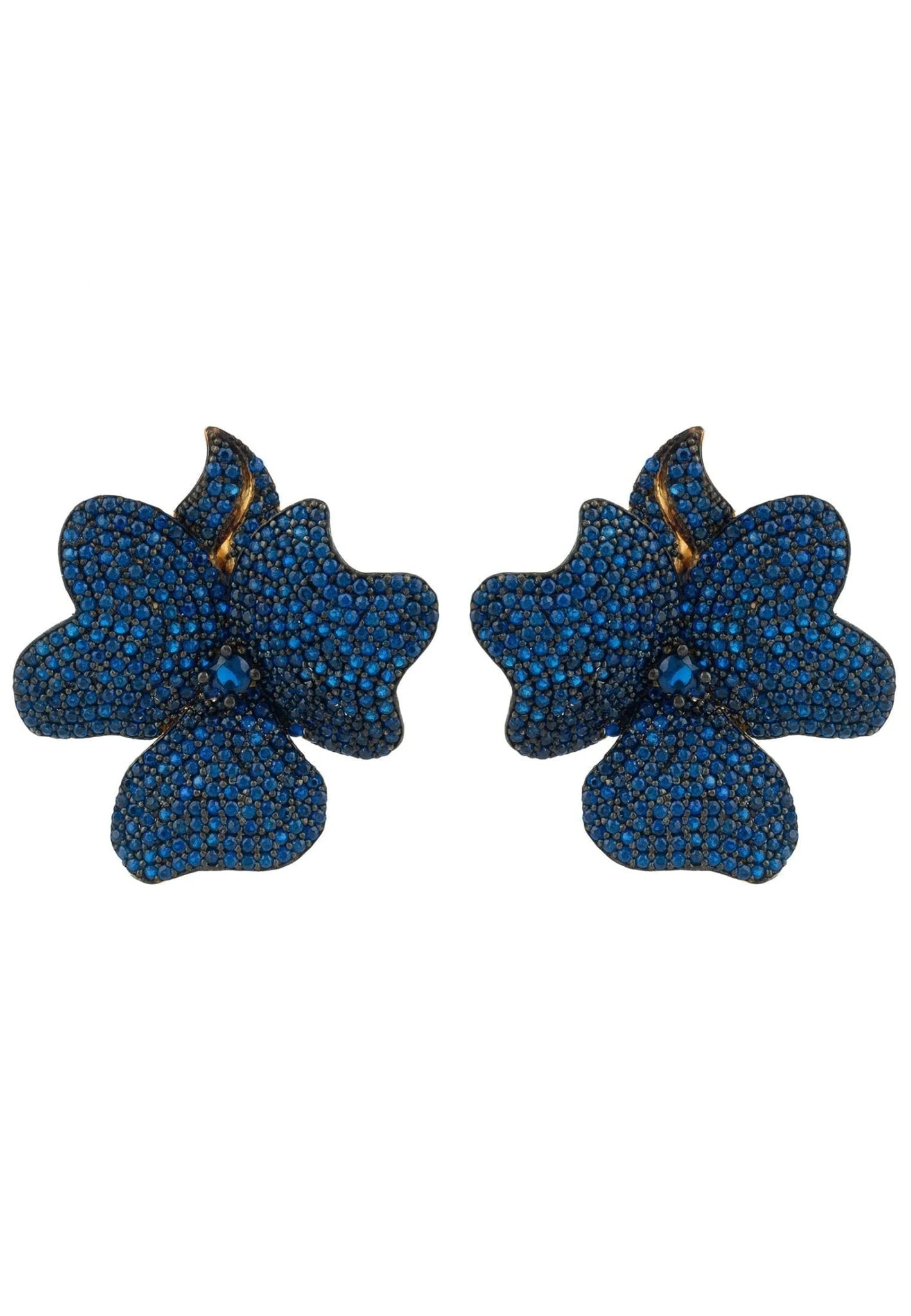 Welcome a unique, elegant touch of sparkle to your jewellery collection with our Flower Large Stud Earrings Gold Sapphire Blue. These stunning earrings will instantly lend sophisticated glamour to any occasion, whether you wear them to accentuate your daytime look or add a twist of glimmering brilliance to your evening ensemble.