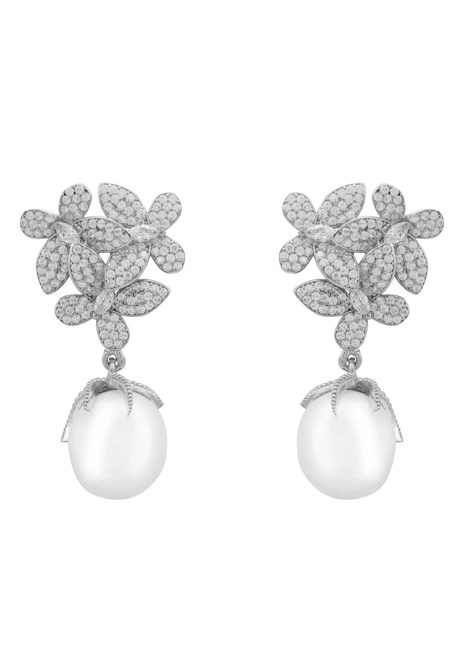 Make an unforgettable fashion statement this season with the breath-taking Flowers Baroque Pearl Earrings. These exquisite earrings, crafted from 925 sterling silver, showcase a timelessly sophisticated floral-inspired design that will bring out your unique beauty and charm. Three delicate blossoms set as if in a bouquet boast an abundance of dazzling cubic zirconia on each petal with a beautiful baroque pearl dangling provocatively beneath, giving it an extra special touch of sophistication. Baroque pearls are naturally formed with organic & irregular shaping.