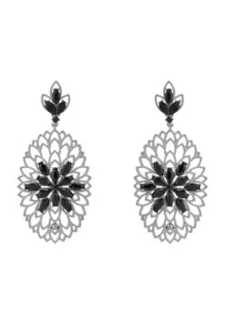 TheĀ full bloom flower earrings dazzle with sparkling cubic zirconia in the design of a flower, beautifully setĀ at the centre of an intricate design of filigree, as fine as if spun by a spider. These oval shaped drop earrings are topped with a gemstone adorned stud post in a leaf design attached by a link to allow natural movement.
