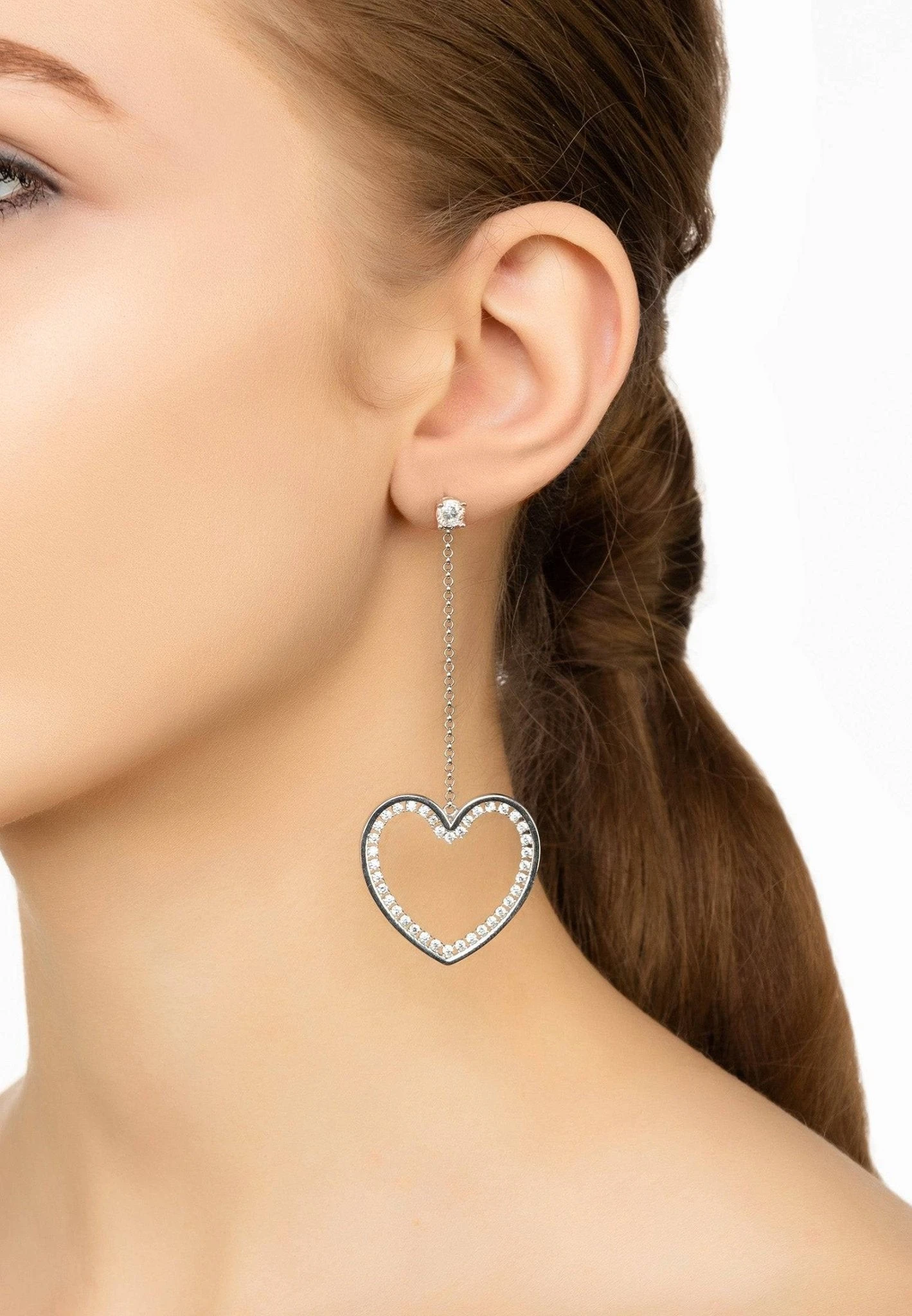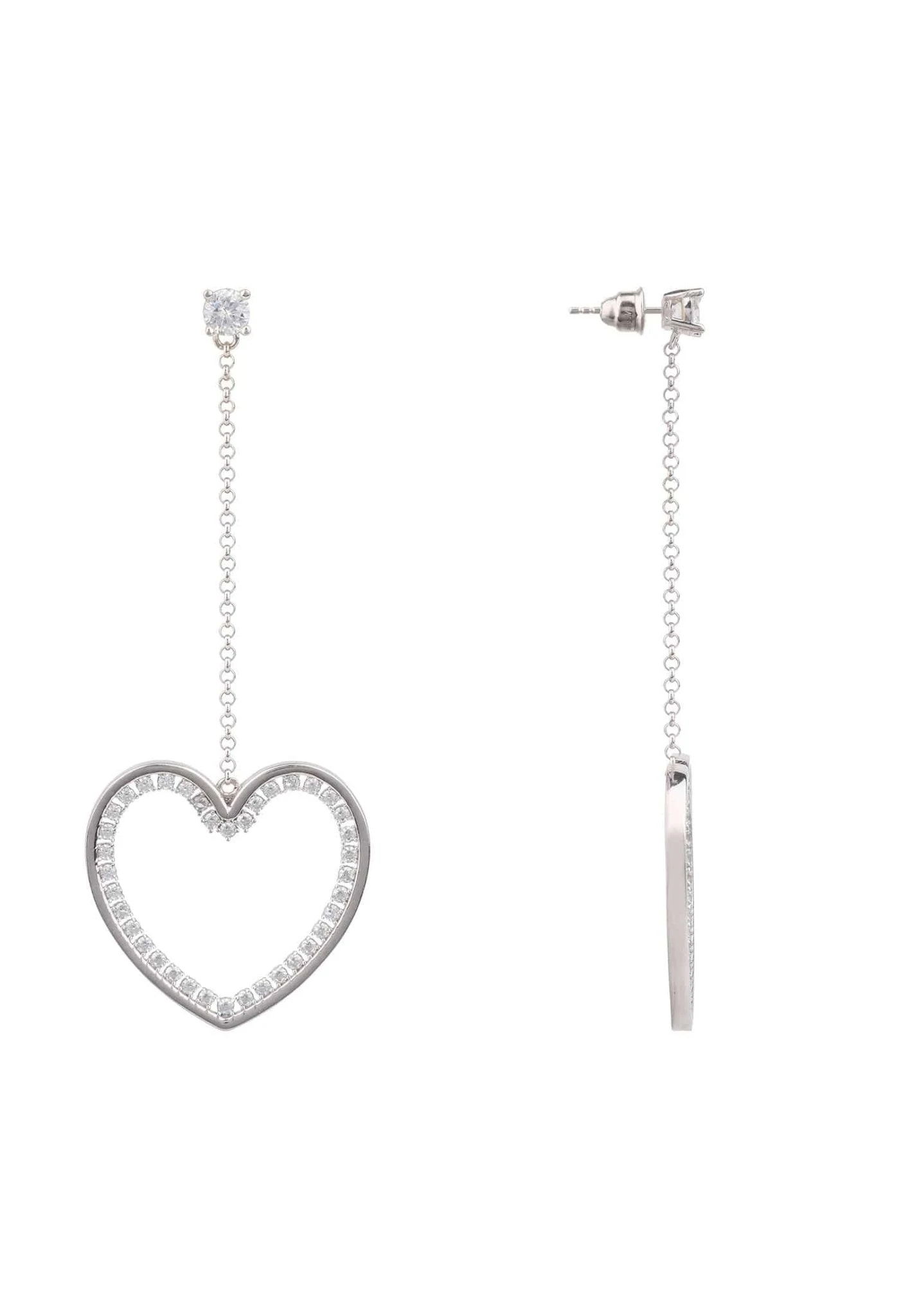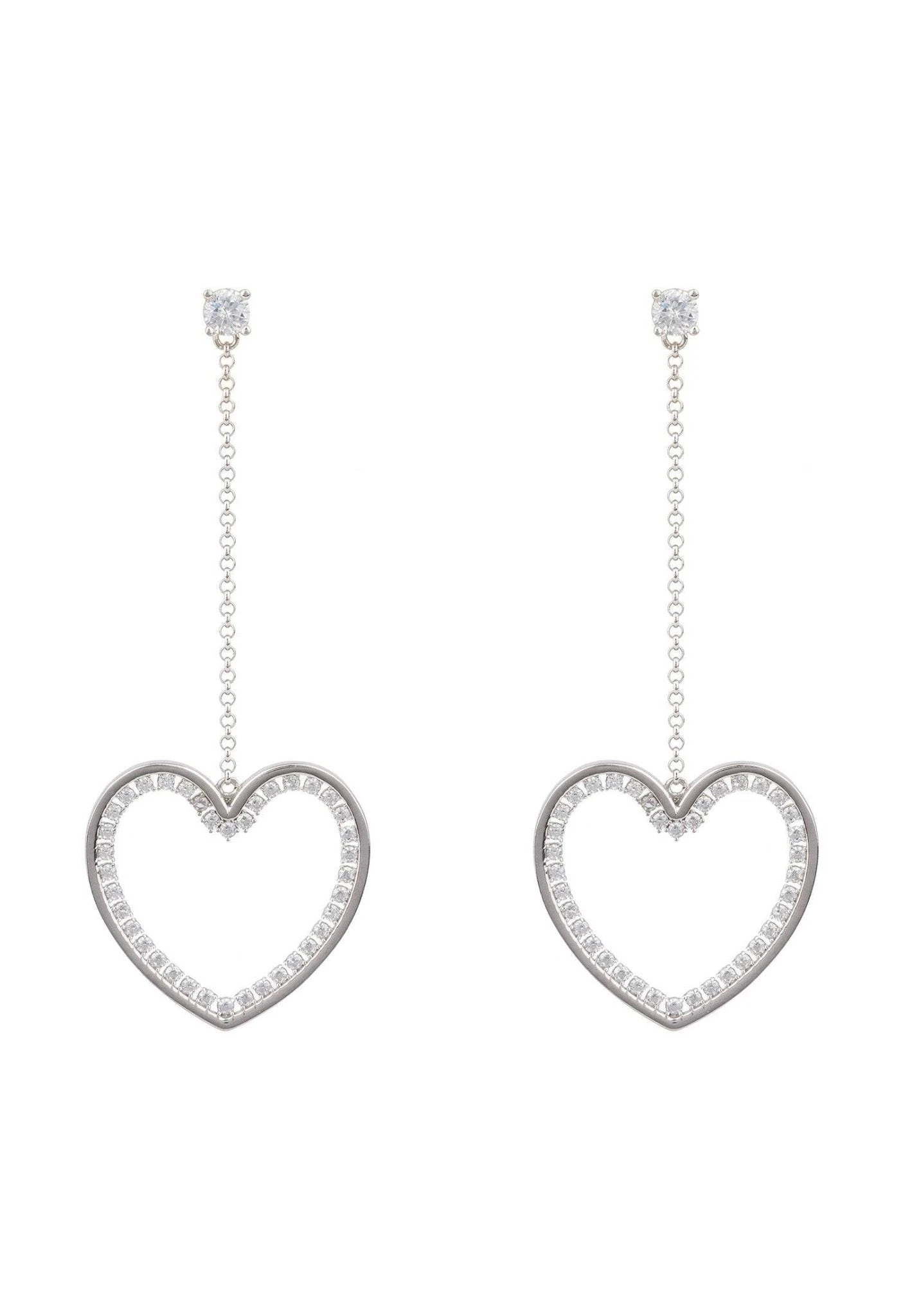 These stylish earrings feature aĀ large open heart outlined in white zirconiasĀ withĀ a studded top adorned with aĀ single zircon.