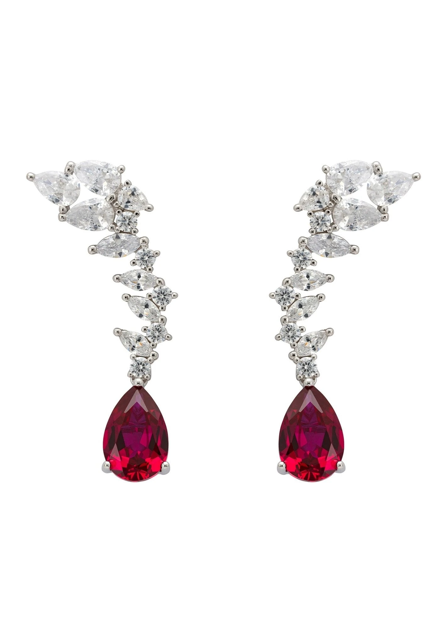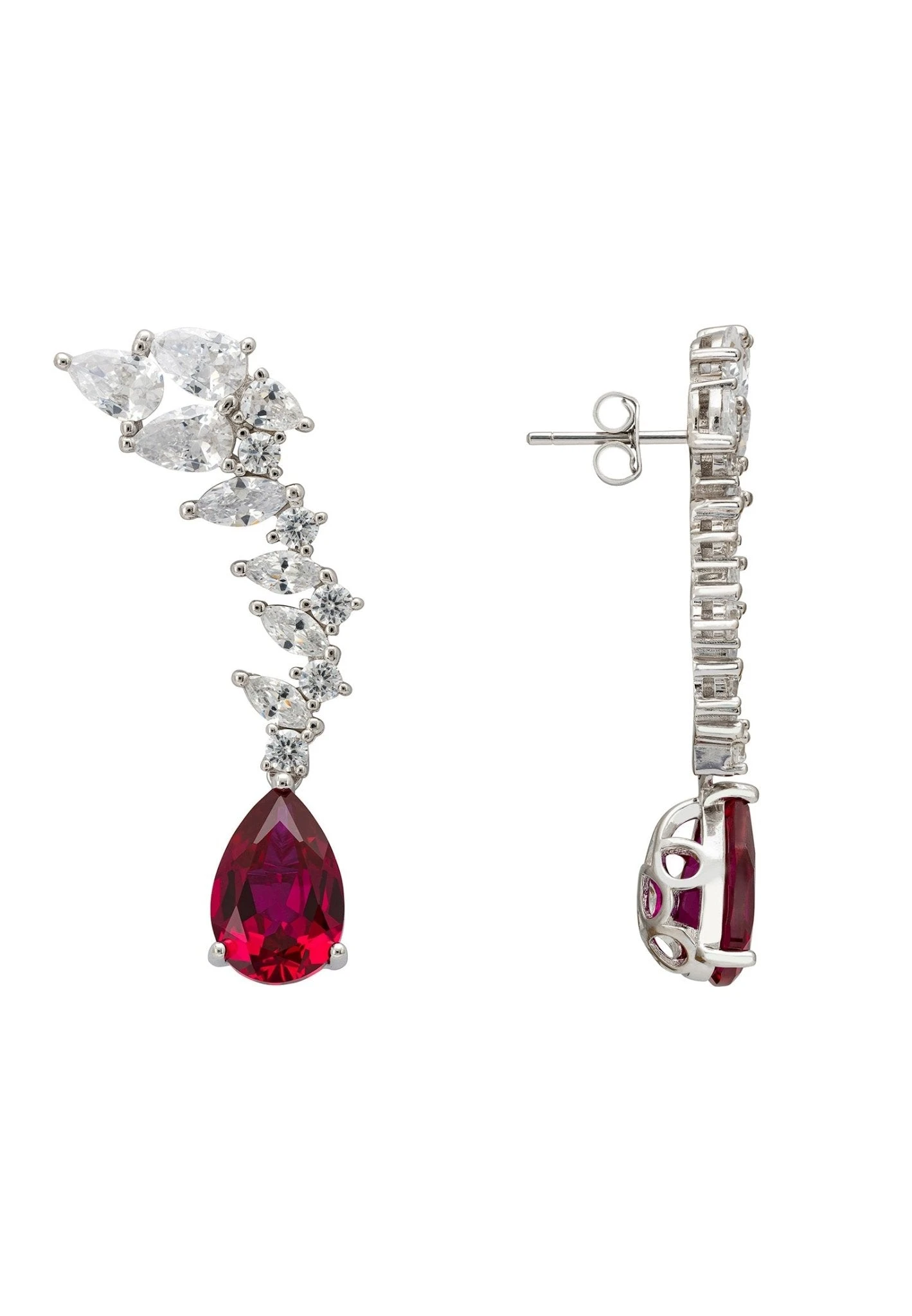 Check out our Henriette Teardrop Earrings in Ruby Silver—a timeless piece that effortlessly blends elegance with a dash of drama. Crafted from high-quality 925 sterling silver, these earrings feature a teardrop-cut, lab-created ruby that sways alluringly from a silver setting. The ruby is highlighted by a constellation of simulated diamonds, adding just the right amount of sparkle. With dimensions of 4.2 cm in length and 1.3 cm at the widest point, these earrings weigh a comfortable 8.0 grams—ideal for any special occasion.