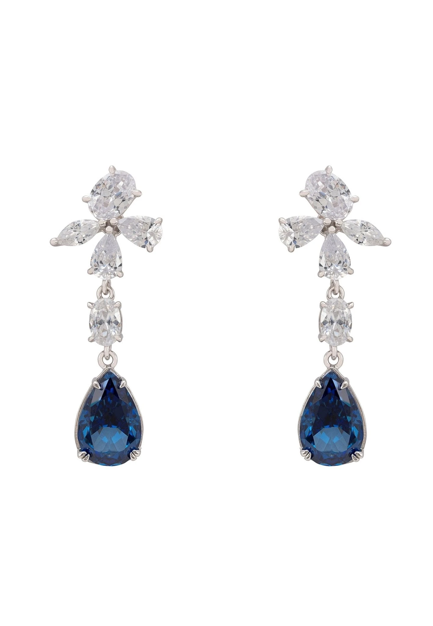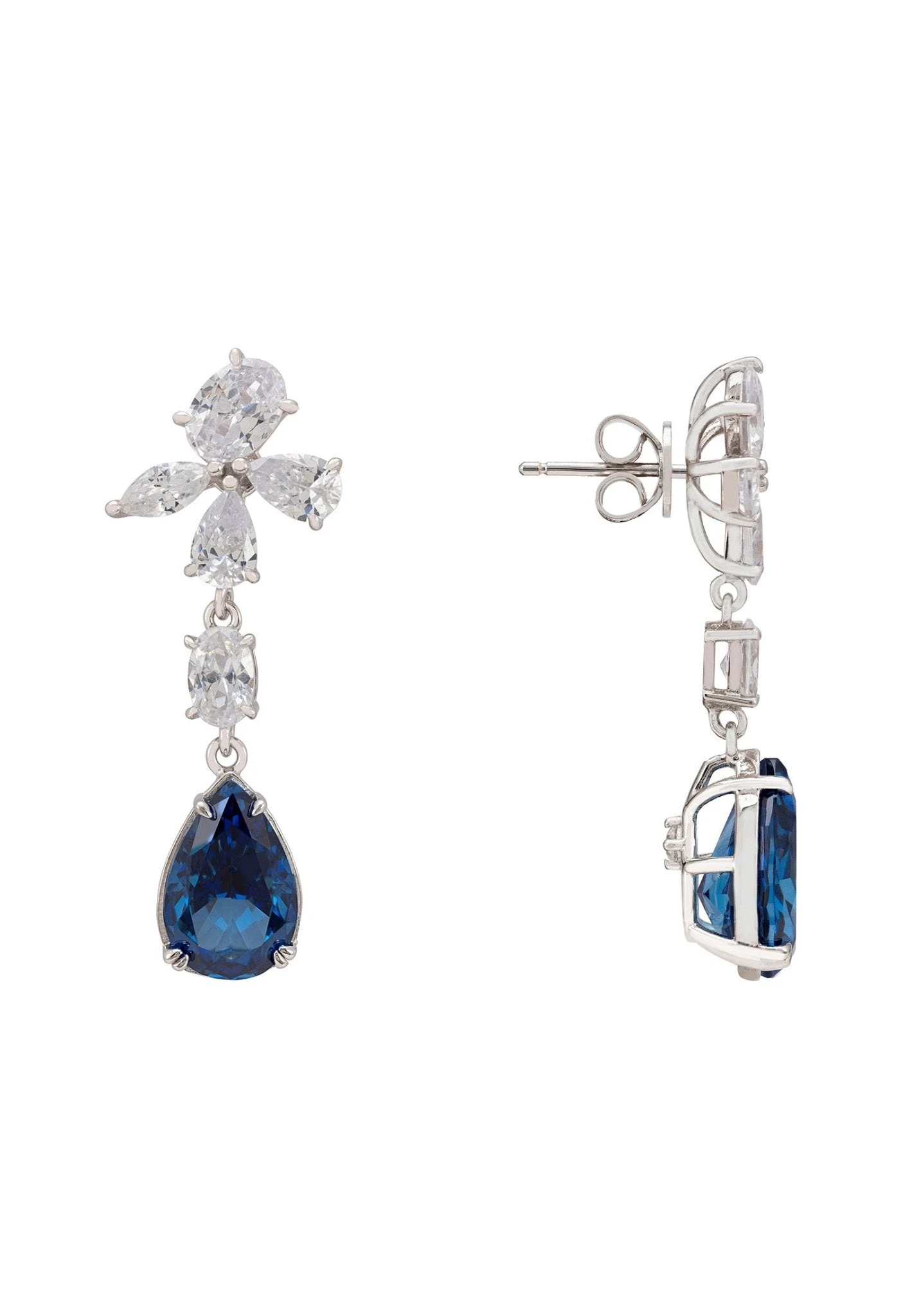 These show-stopping earrings feature a four petalled flower top set with dazzling simulated diamonds, dangling a pear-shaped Tanzanite in a beautiful 925 sterling silver setting. No detail was forgotten in the design of these earrings- even the backs! A single sparkling simulated diamond is placed behind the Tanzanite gem, ensuring that you look good no matter how you wear your hair.