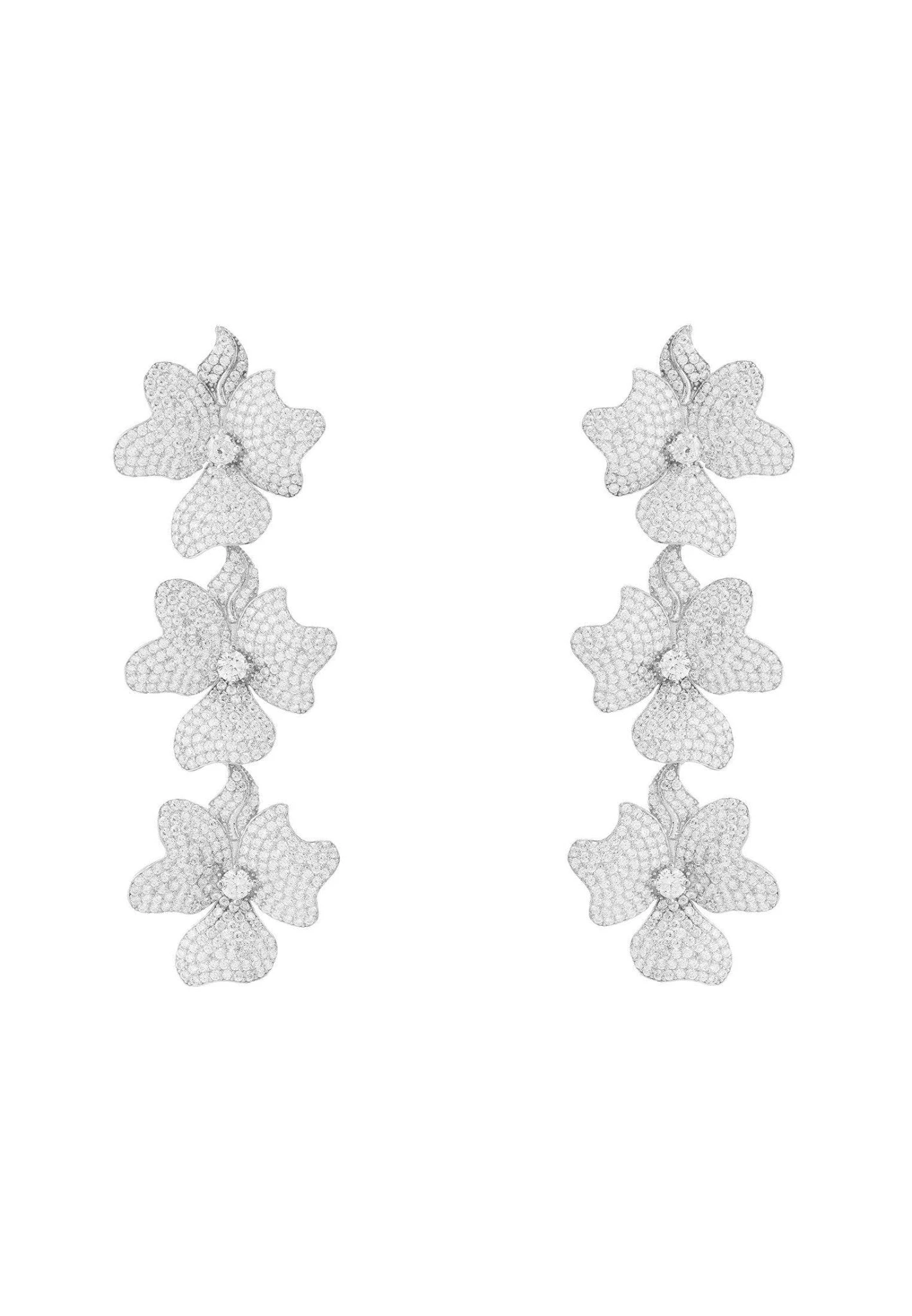Ideal for those who love statement jewellery with added sparkle. Make these floral inspired earrings your new timeless treasures. Perfect as bridal or wedding jewellery. These earrings will take you to every evening and black tie event.