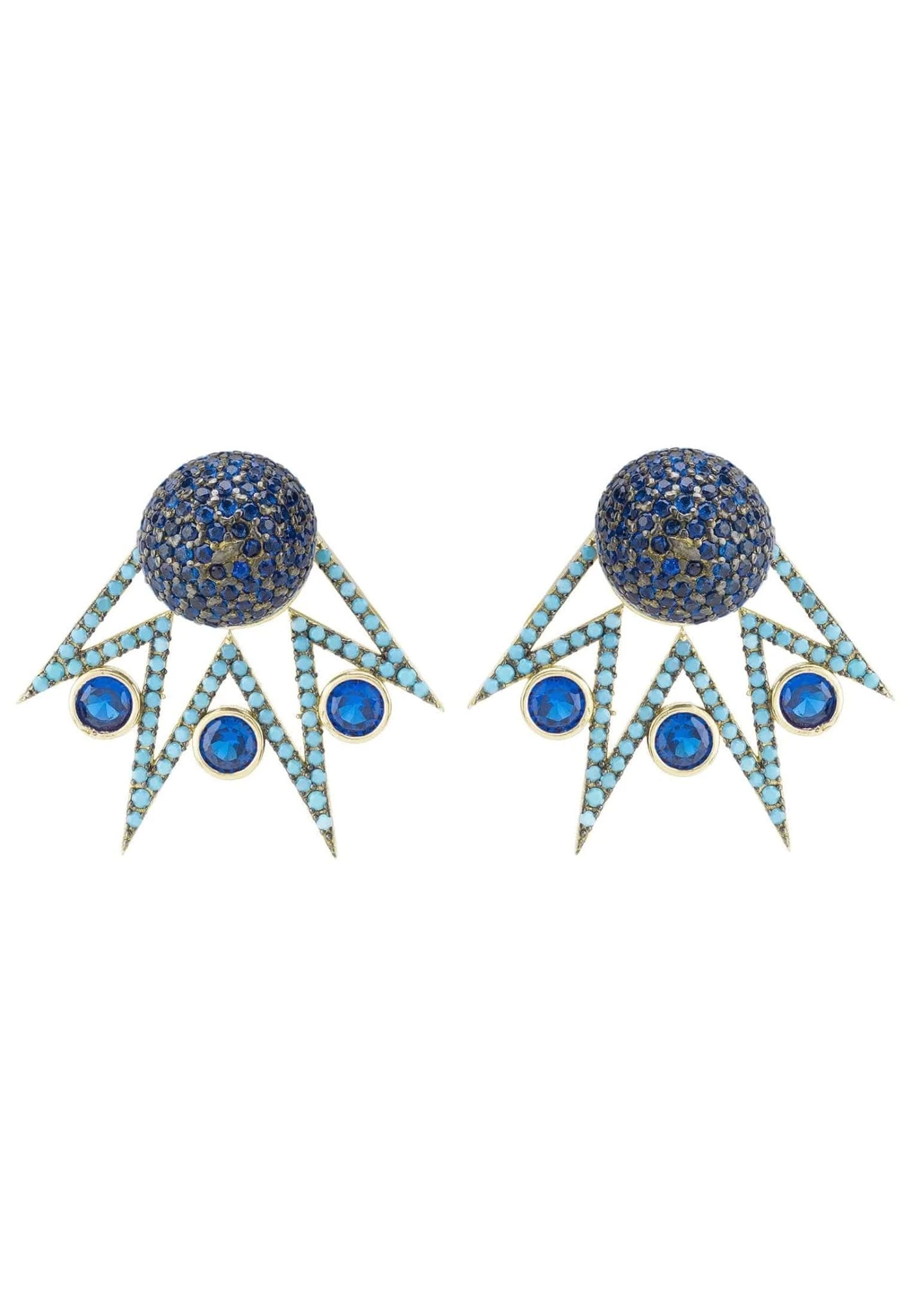 Inspired by a medieval court, the Jester ear jacket convertible earring features a zig zag design with ball stud top, these bold earrings are adorned with Latelita London signature zircon detailing and are perfect for those who want to sparkle.