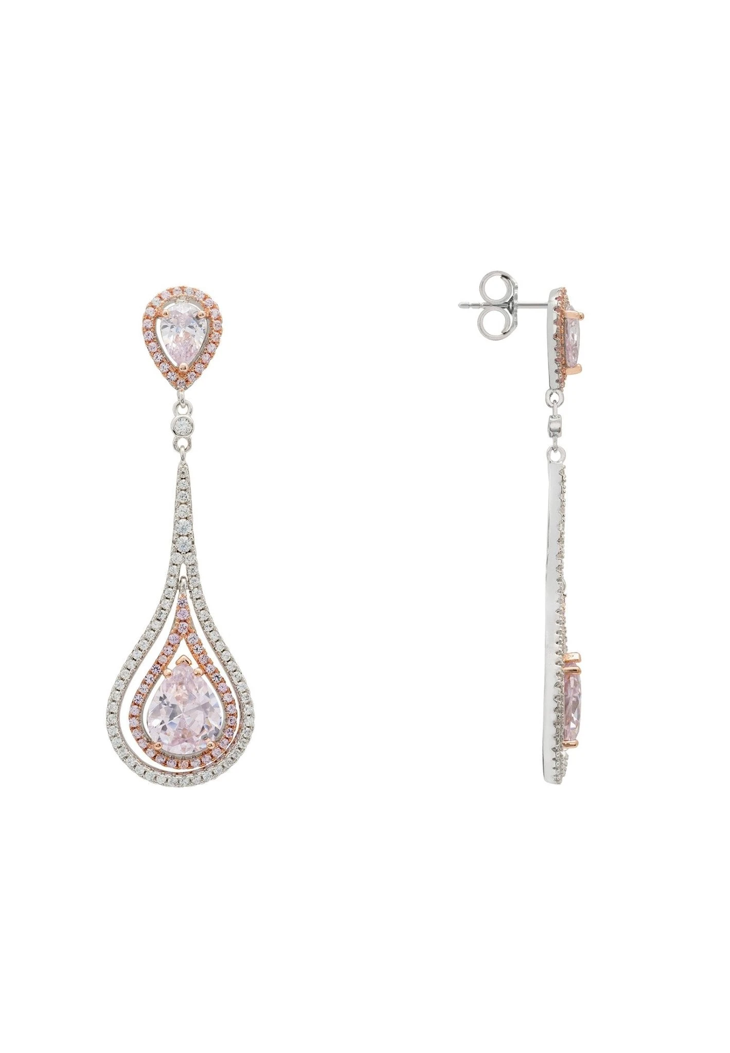 Long, elegant, and eye-catching, the Lady Jane Pendulum Drop Earrings are sure to turn heads. The teardrop shape is accentuated by two pear-shaped lab-created Morganite, each nestled in a halo of sparkling pink simulated diamonds. The elongated teardrop design of this earring allows the larger of the stones to move freely as a pendulum within a larger setting decorated with white simulated diamonds, making them truly unique and eye-catching.