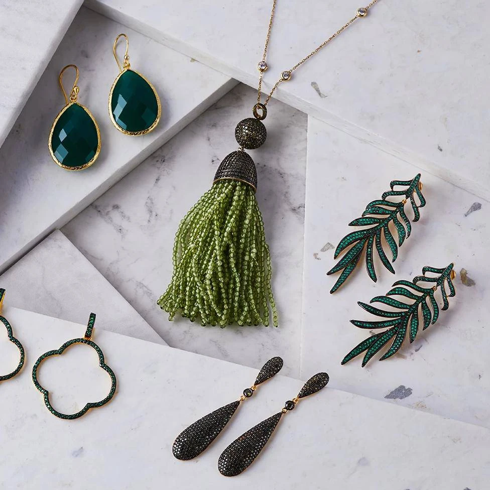 Whether you’re dressing up for a special event or simply want to add a touch of panache to your everyday look, these earrings are sure to become a favourite in your jewellery collection. A luxuriant covering of emerald green zirconia make these earrings hypnotic with their dazzling effect as they catch the light and dazzle from day to night.