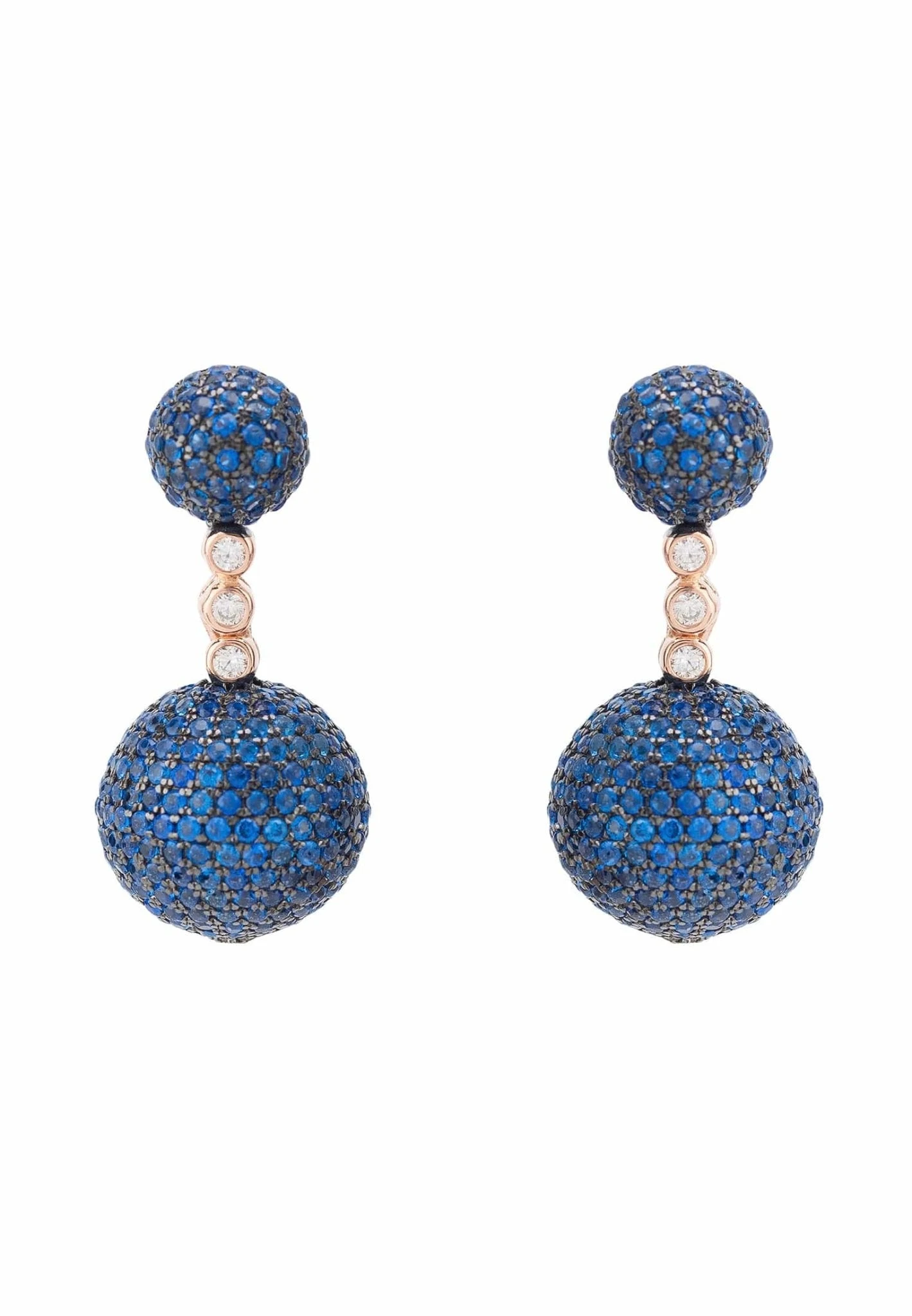 Designed as a brilliant-cut three dimensional sphere shaped drop, suspended from a smaller sphere shaped top, separated by a row of three clear white zirconia to create some movement for the wearer. These striking earrings feature a vast array of sparkling zirconia set in 925 sterling silver to add a pop of colour to any outfit.