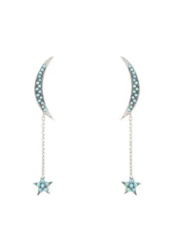 The earring features a small petite star which dangles from a crescent moon, both adorned with Latelita signature sparkles.