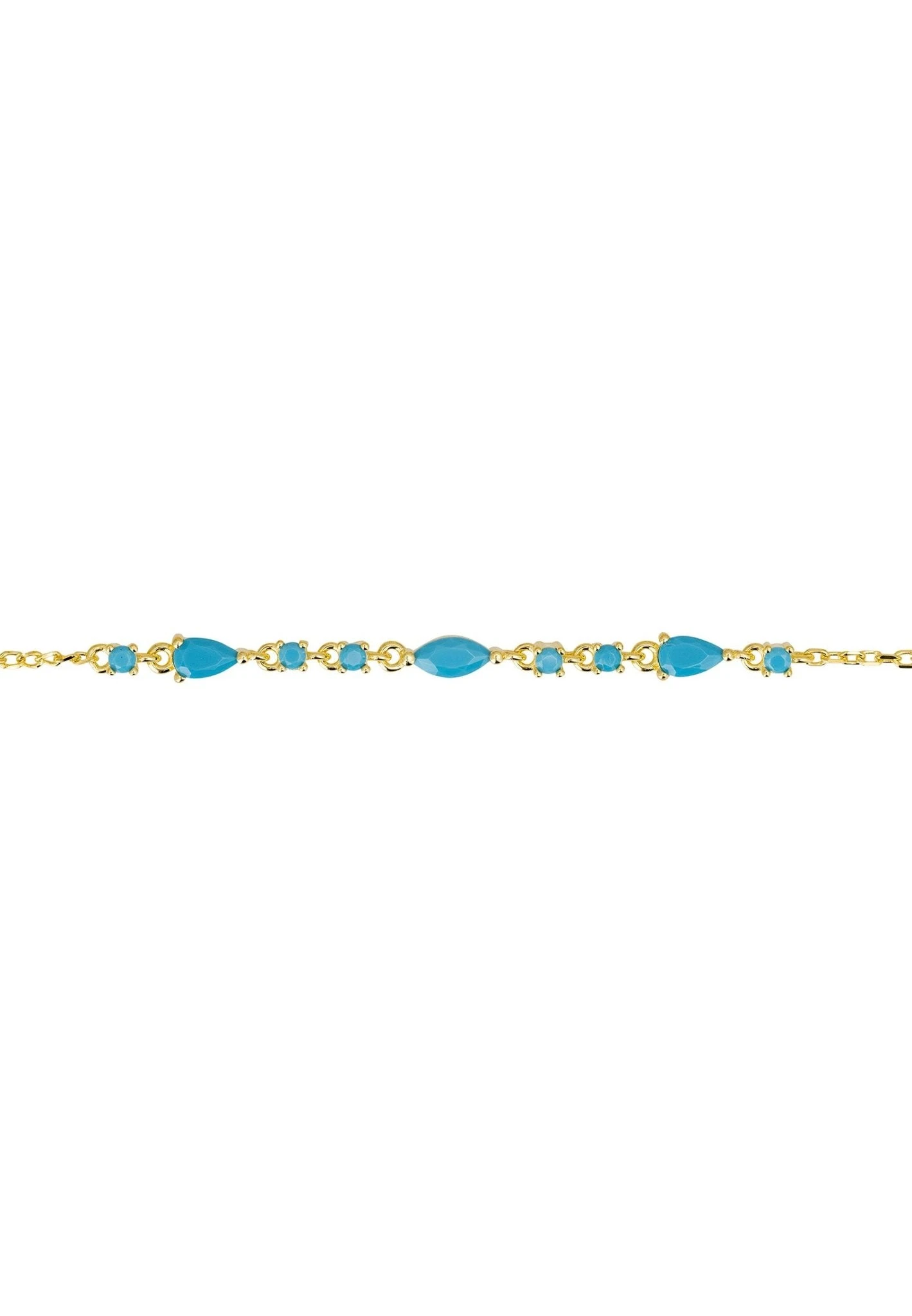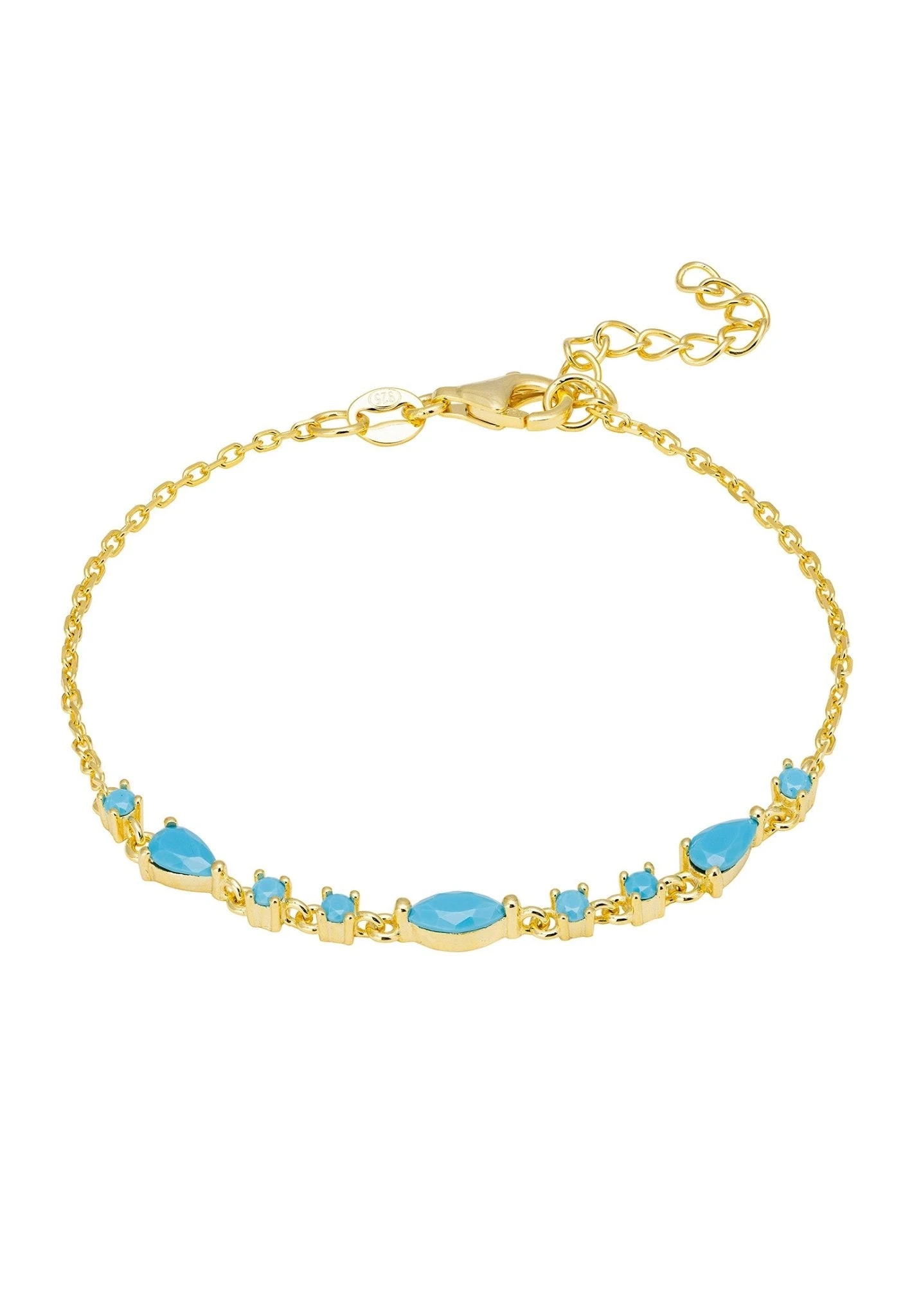 The design features an enchanting arrangement of marquis, teardrop, and round turquoise gemstones. The whole piece has a weight of just 2.0 grams, and with a versatile length that ranges from 15.5 to 18.5 cm, it’s designed for both comfort and flair. Secured by a dependable lobster clasp, you can enjoy peace of mind while showing off your new favourite piece.