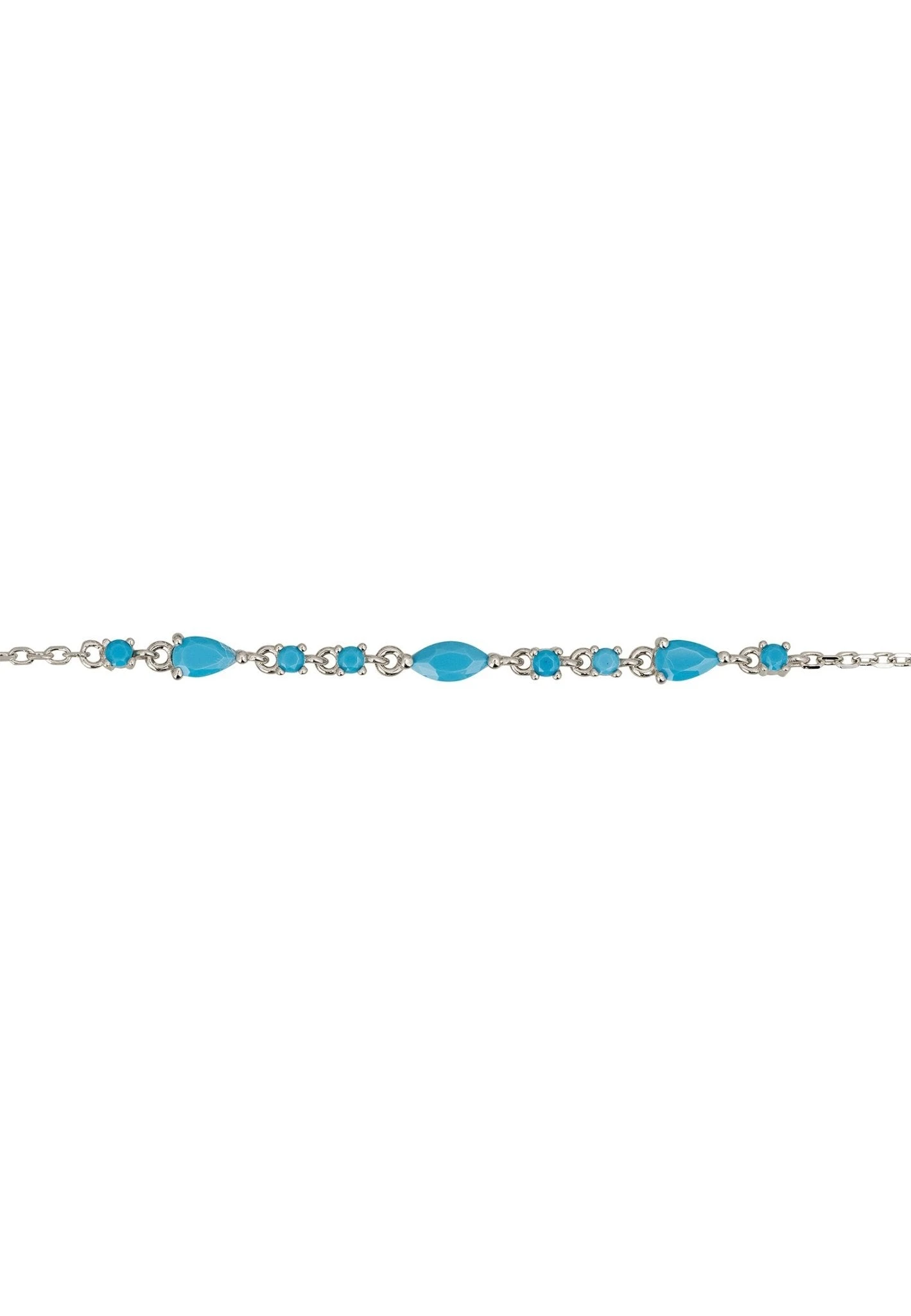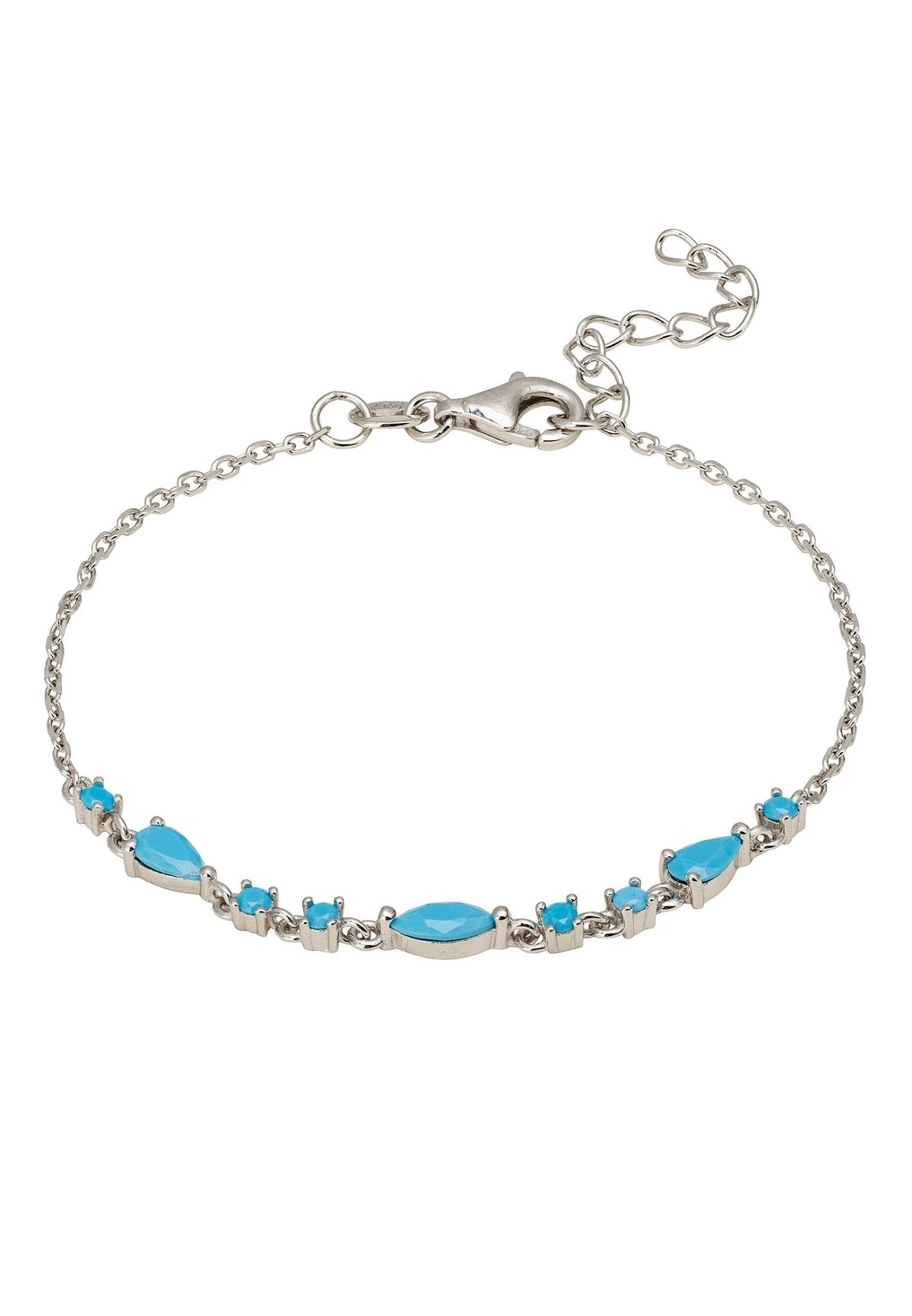 The design features an enchanting arrangement of marquis, teardrop, and round turquoise gemstones. The whole piece has a weight of just 2.0 grams, and with a versatile length that ranges from 15.5 to 18.5 cm, it’s designed for both comfort and flair. Secured by a dependable lobster clasp, you can enjoy peace of mind while showing off your new favourite piece.