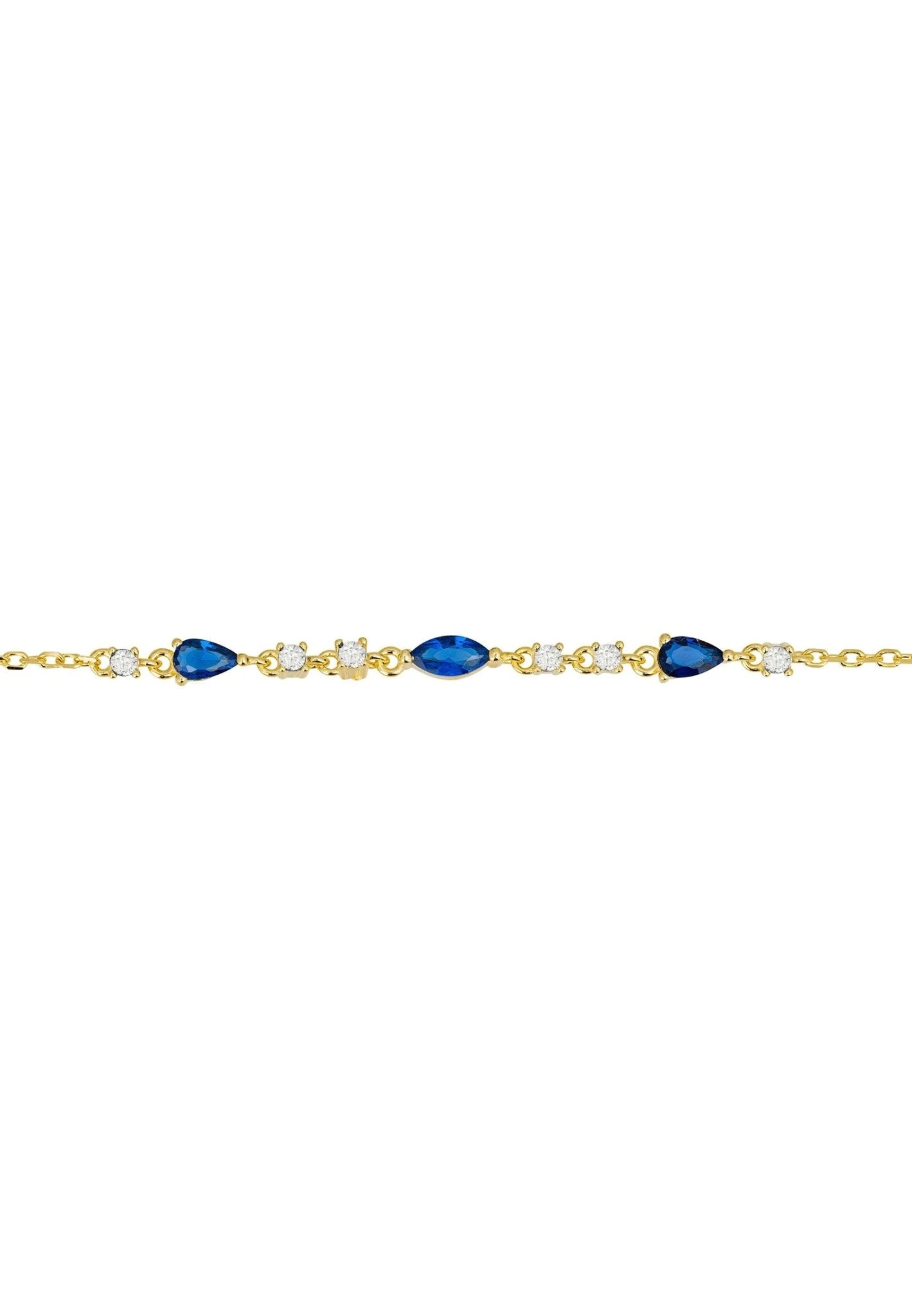 Meet the Olivia Gemstone Bracelet in Sapphire Gold—your next go-to for elegance with a dash of meaning. Made from top-notch 925 sterling silver and coated in luxurious 18-carat gold, this bracelet is as durable as it is dazzling. The design features an eye-catching mix of marquis, teardrop, and round cut sapphire zircons. These deep blue stones are perfectly accented by twinkling cubic zirconia stones. With a weight of just 2.0 grams and a length that adjusts from 15.5 to 18.5 cm, it’s as comfortable as it is chic.