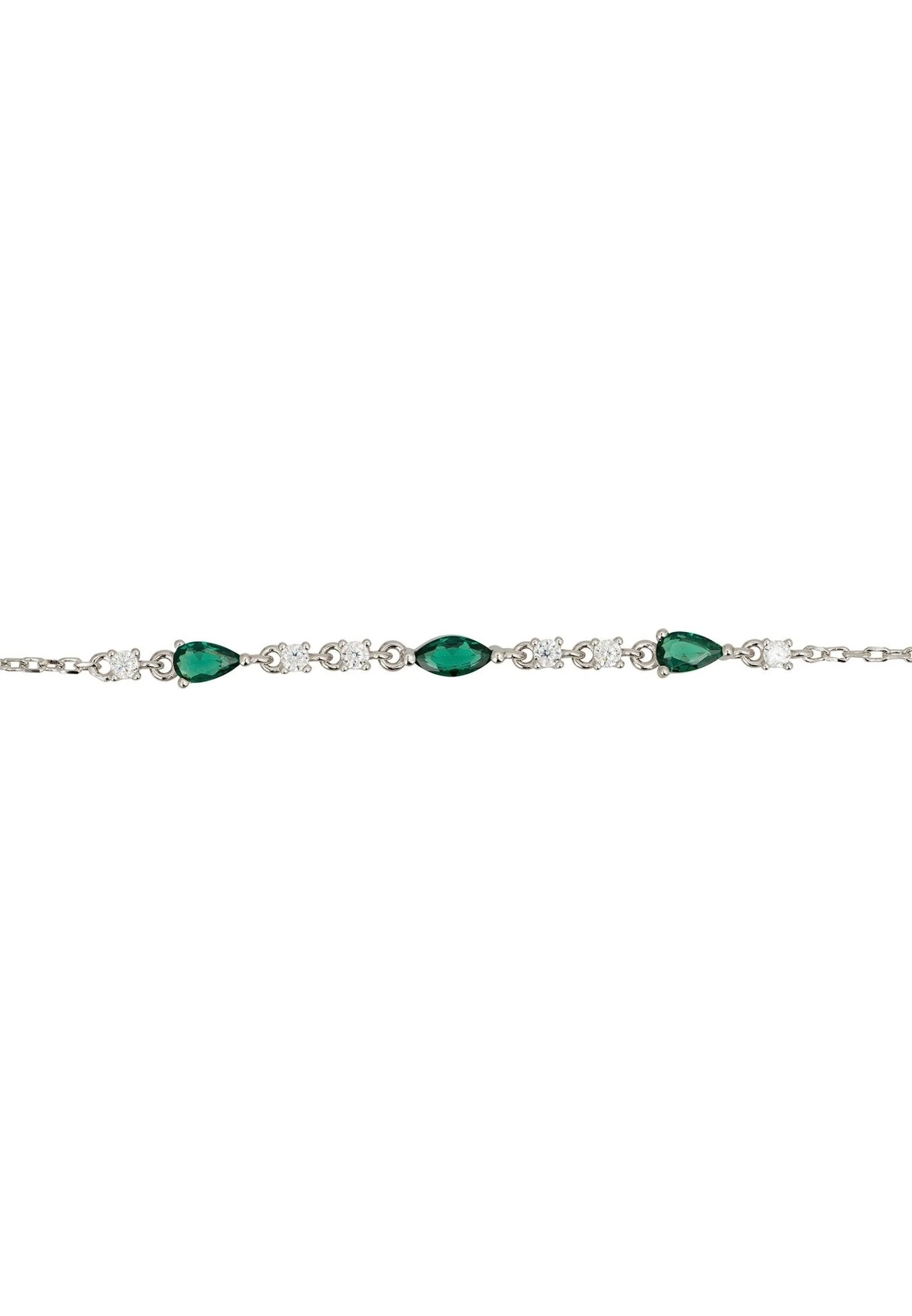 The design is a charming blend of marquis, teardrop, and round shaped emerald green zircons. These stones are brilliantly punctuated with cubic zirconia sparkles, all set along the front to catch the light and the eye. Weighing in at just 2.0 grams and adjustable from 15.5 to 18.5 cm, it’s comfortable enough for everyday wear while adding a touch of glam to any outfit. Secured with a sturdy lobster clasp.