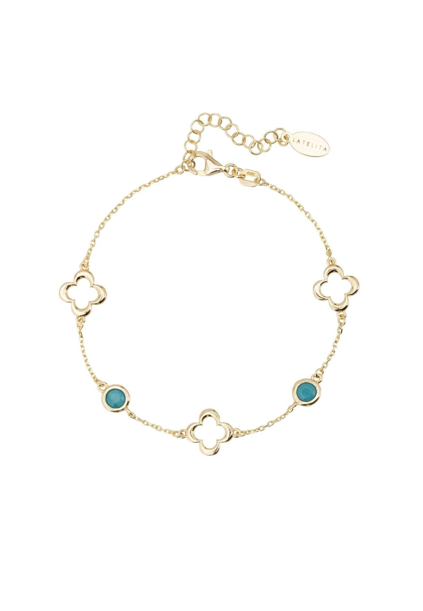 Let thisĀ open clover gemstone bracelet be your new wardrobe staple. Ideal for those who love delicate jewellery, this gemstoneĀ braceletĀ features a metallic open clover design alternatingĀ with gemstones set along a chain.