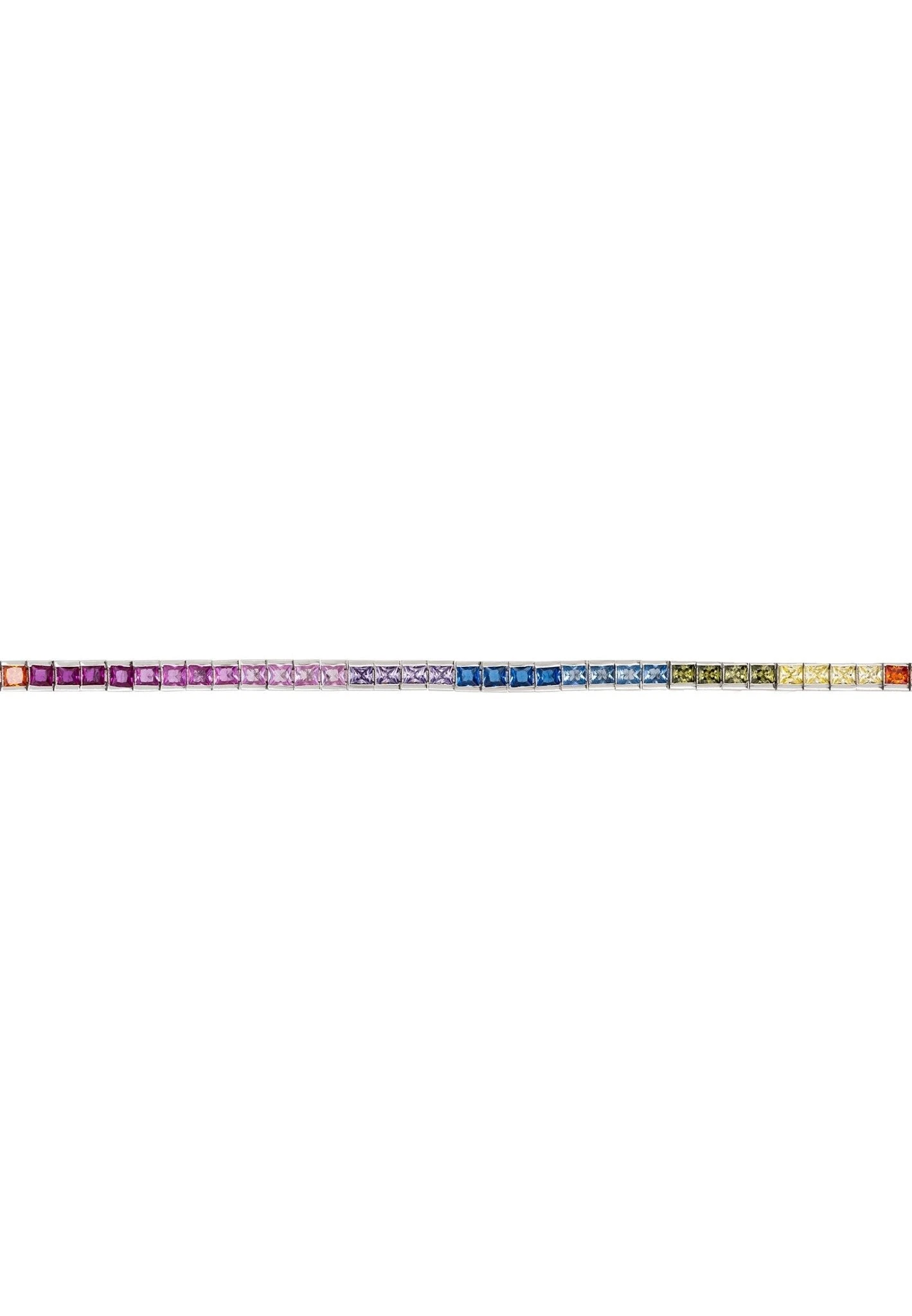 Bring brightness and beauty to any ensemble with the Over The Rainbow Tennis Bracelet Silver! This one-of-a-kind bracelet was handcrafted with 925 sterling silver, so it’s made to last. Give any look a burst of colour with this stunning rainbow bracelet. It’s decorated throughout with square cut multicoloured cubic zirconia that glimmer brightly like diamonds!