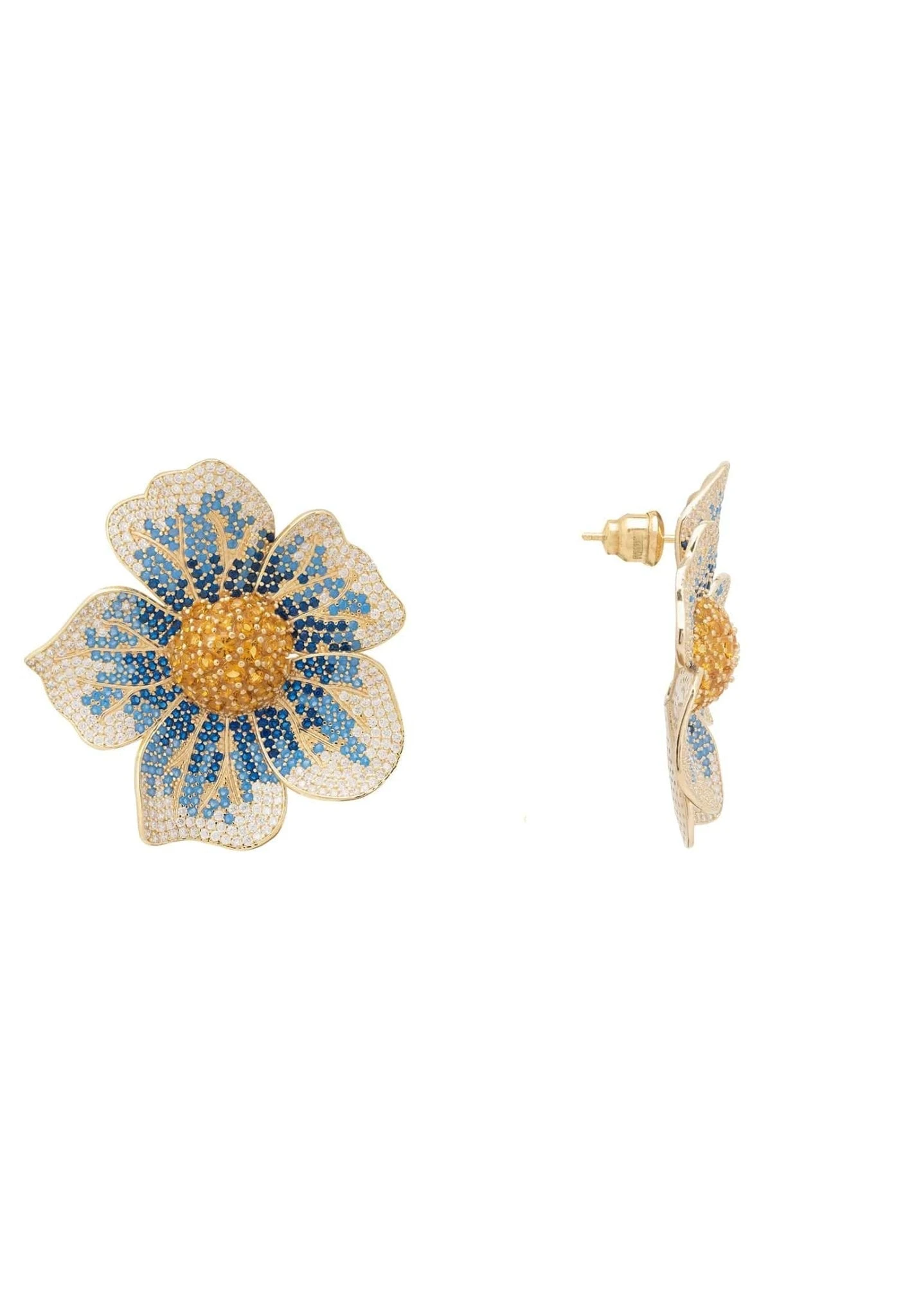 These large pansy earrings are adorned with sparkling cubic zirconia, with graduated shades of blue through to white on the petals and vibrant yellow at its centre. Three dimensional in design for added interest, which will add a touch of sophisticated style to any outfit.