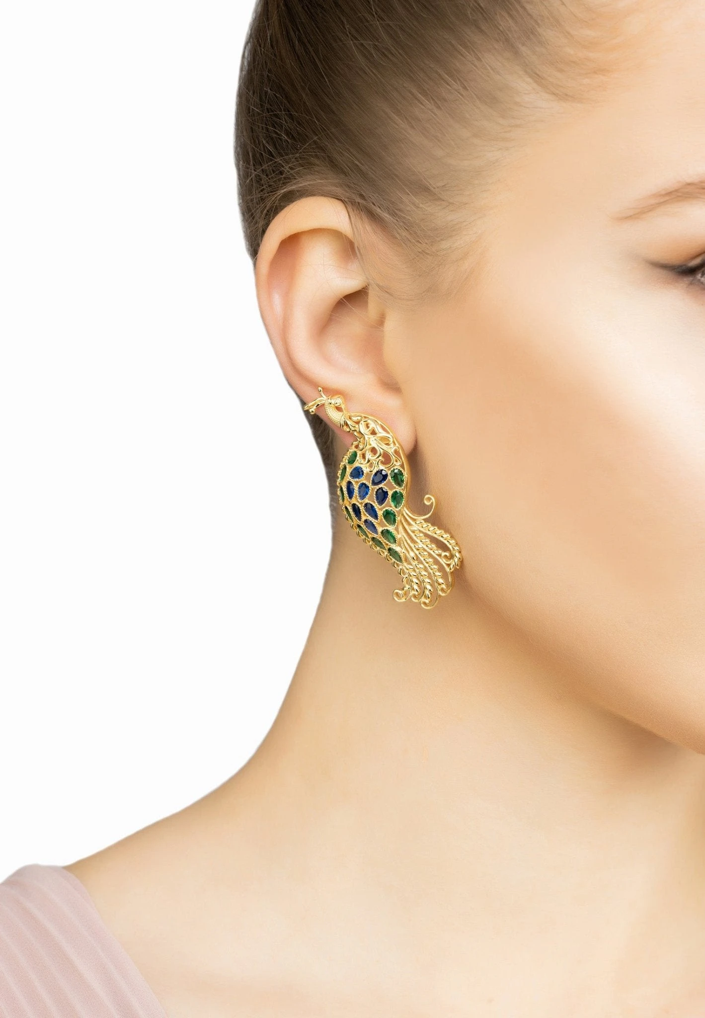 The design takes inspiration from the majestic train of a peacock, the perfect accessory for any fashionista looking to add a little extra colour and glamour to their wardrobe.