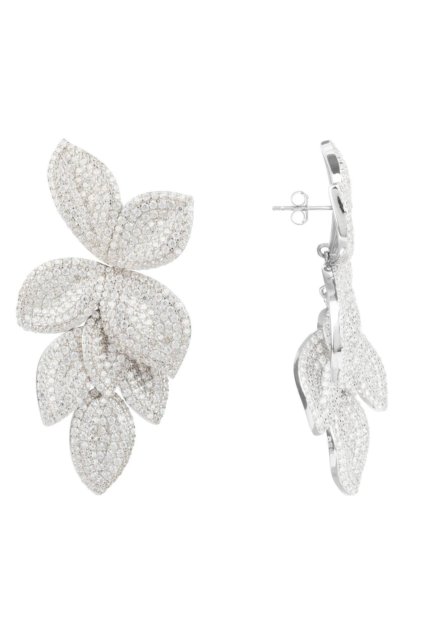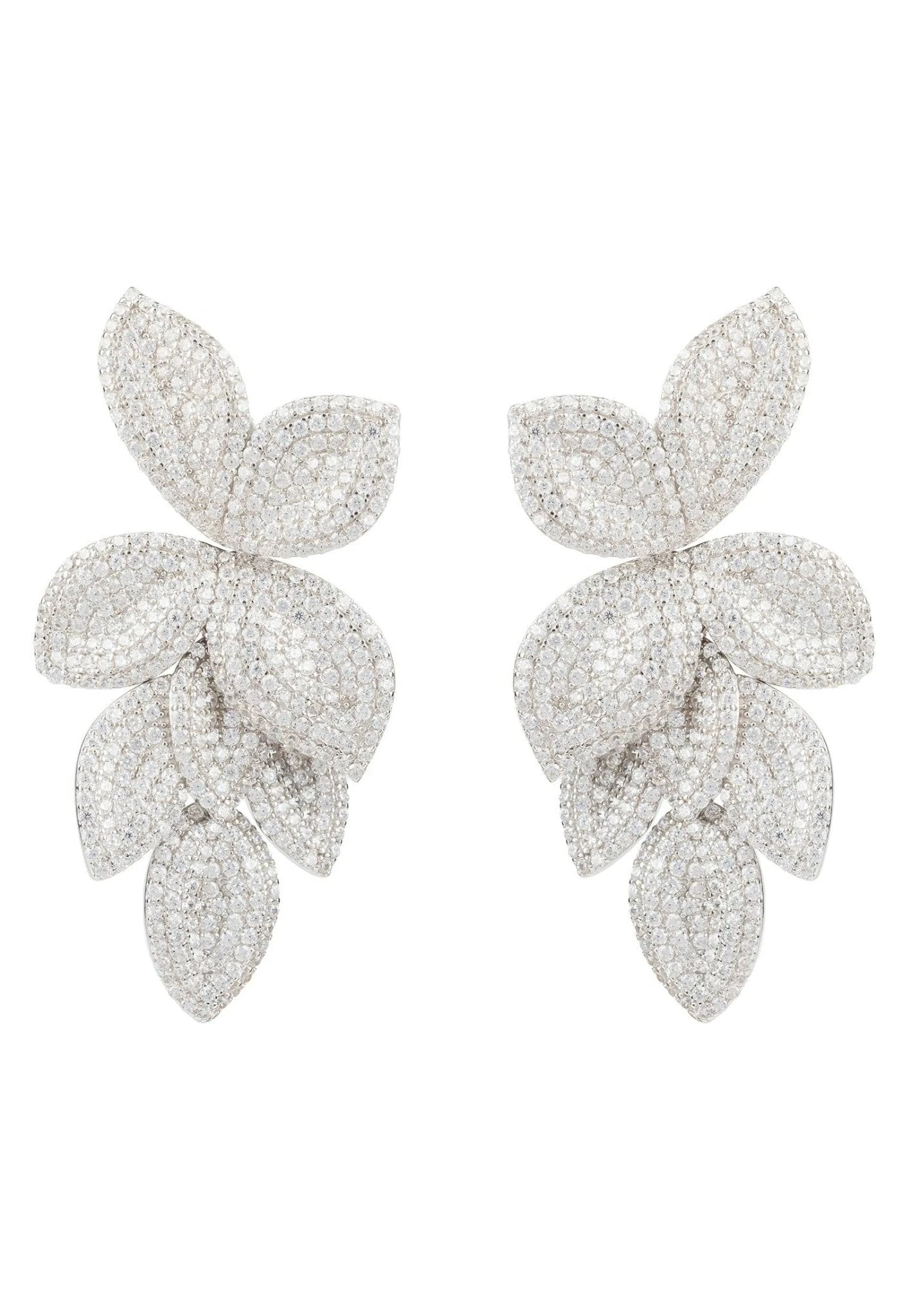 To allow for natural movement when worn, there is a link beneath the first two petals which form the stud top. They are 5.5cm in length and 3cm wide and made from 925 sterling silver that has been handset with micro pave white cubic zirconia.