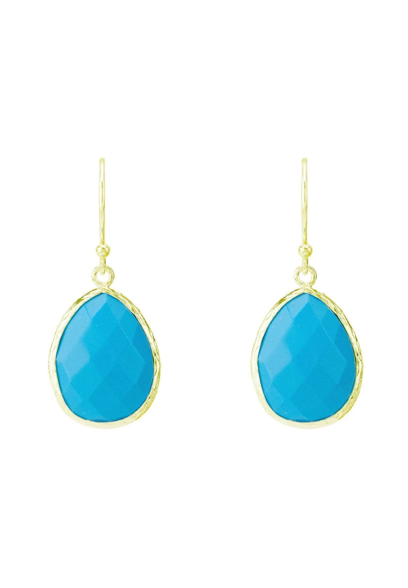The Turquoise gemstones in these earrings are a lovely pastel blue. It has a soothing, relaxing quality that is ideal for everyday use, and the gold accents provide a touch of refinement. Wear with the Latelita Turquoise necklace for the complete look.