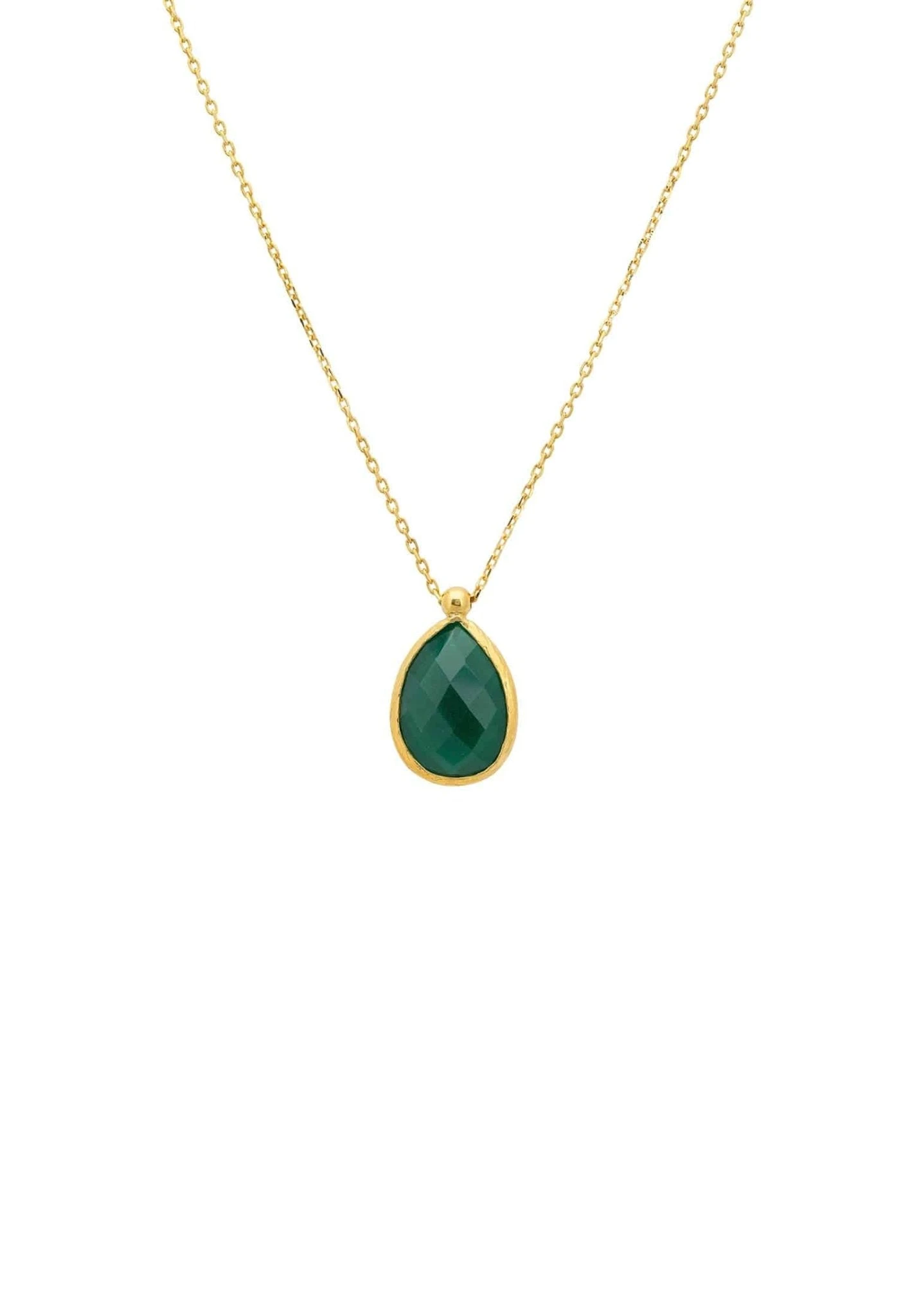 The Petite drop necklace is ideal for those who adore colourful jewellery. Featuring a medium sized teardrop shaped gemstone, beautifully set within a metallic setting which frames its outer edge, topped with a metallic bail to allow the chain to move freely through.