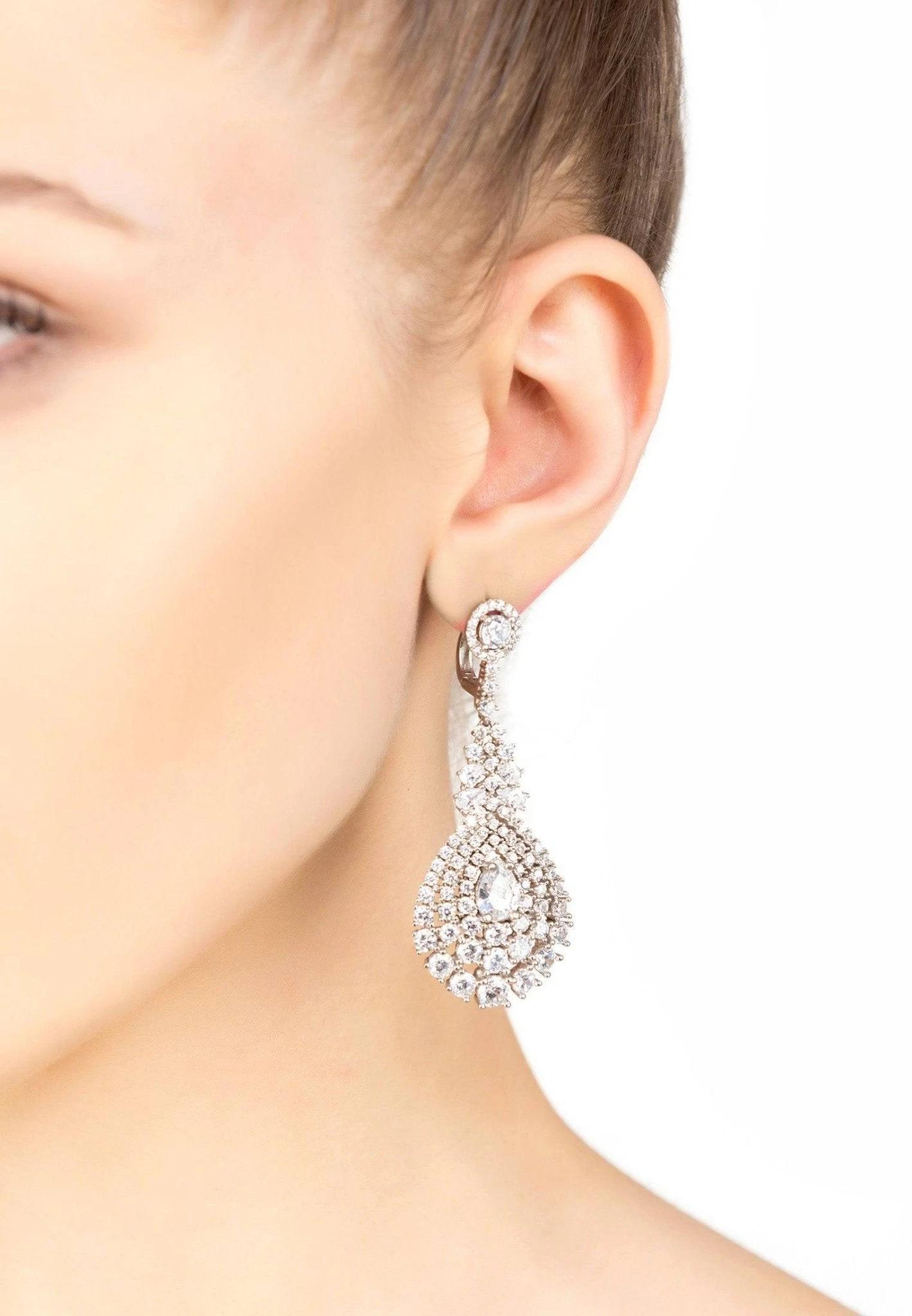 These spectacular chandelier earrings with incredible detailing and an abundance of clear crystals and zirconia are the perfect way to make a statement.