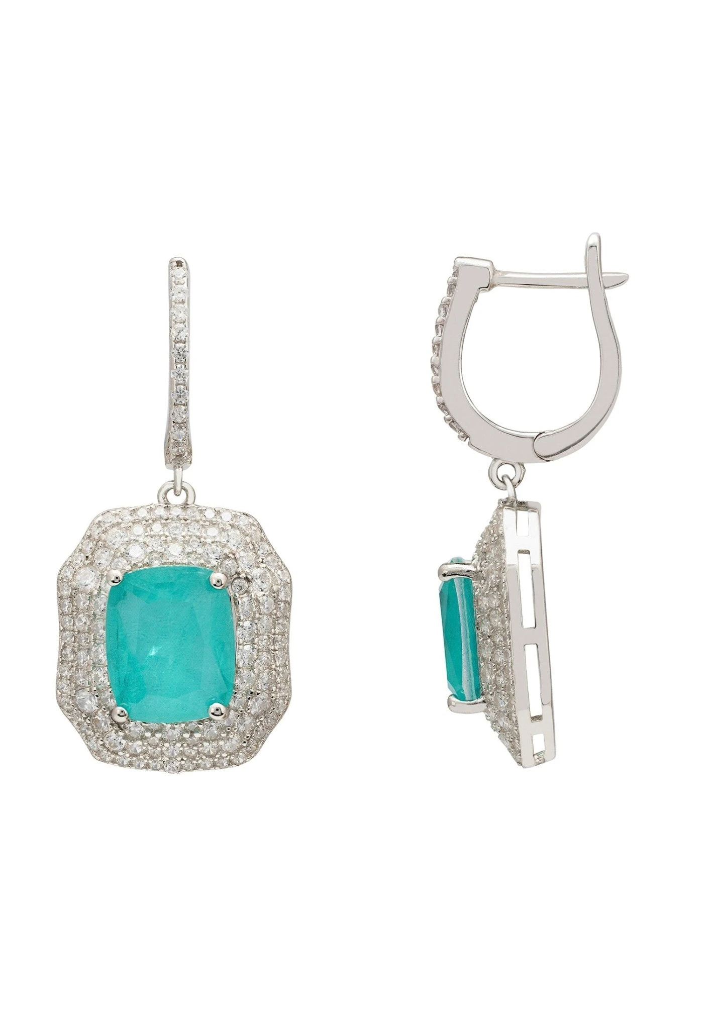 The rectangular shaped gemstones are encased by three rows of simulated diamonds, and for even more sparkle there are more simulated diamonds on their latch back fitting. Not only that, but these earrings measure 3.8cm in length and 1.8cm in width, giving you an overall elegant silhouette as well as stunning sparkle all at an unbelievable weight of 8.2 grams!