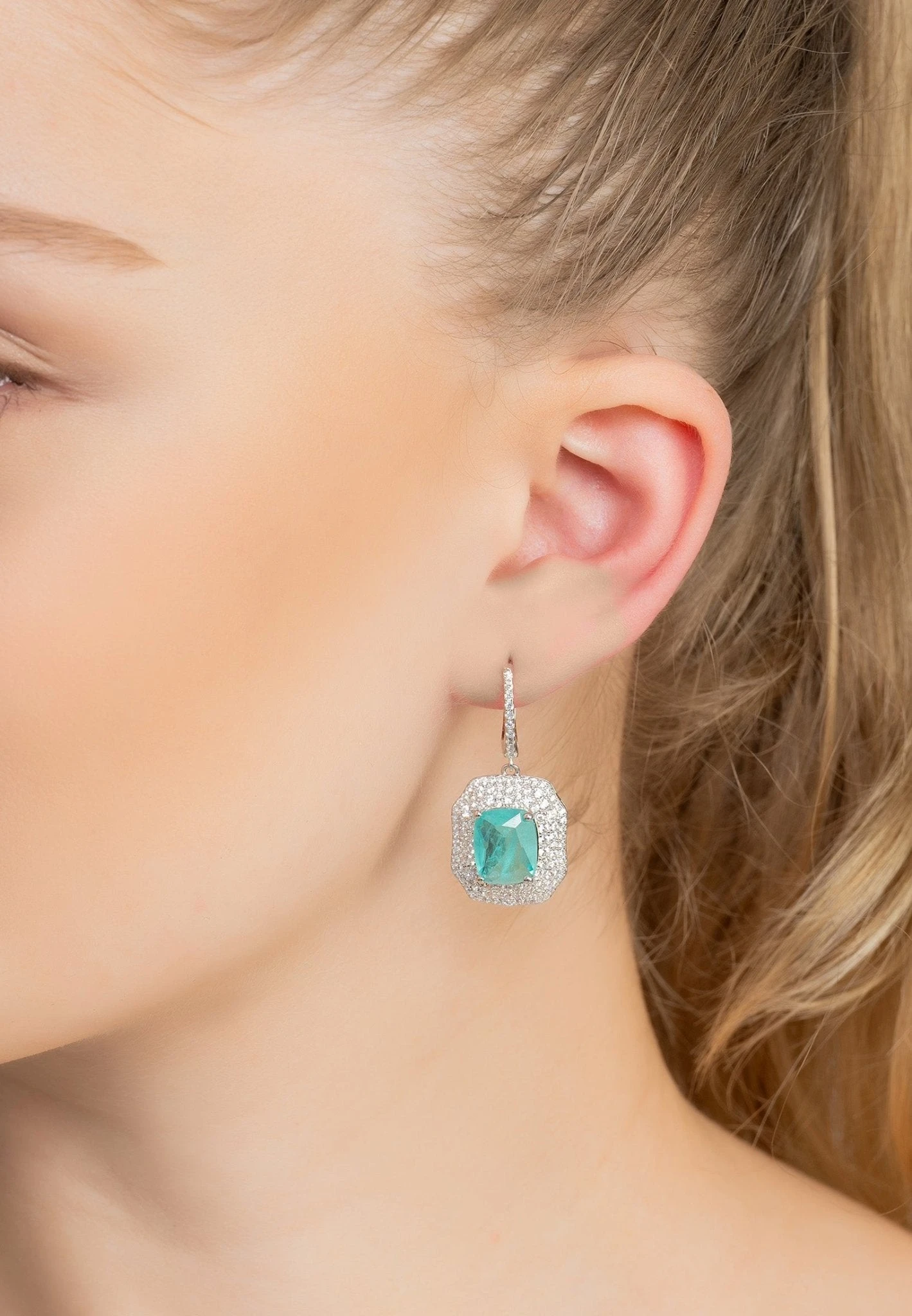 Introducing the Seraphina Drop Earrings Silver, perfect to make a statement and add some sparkle to your look. Handcrafted in 925 sterling silver and set with beautiful lab-created Paraiba tourmaline gemstones, we love the glamour they bring.