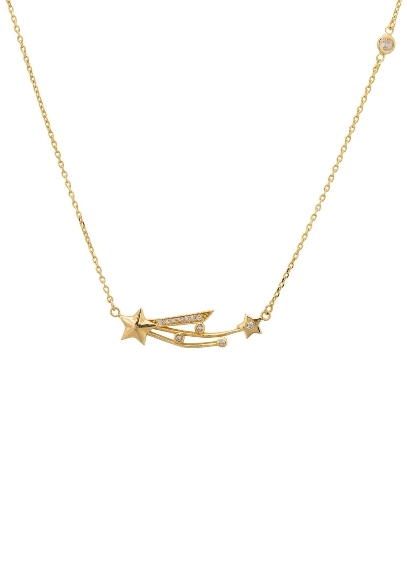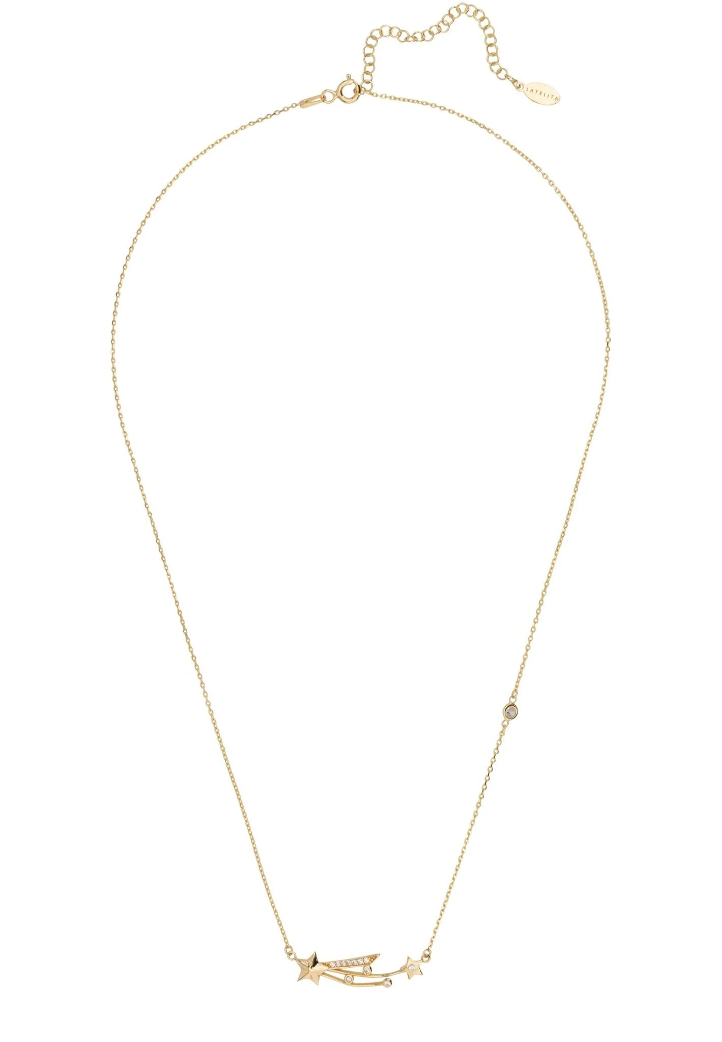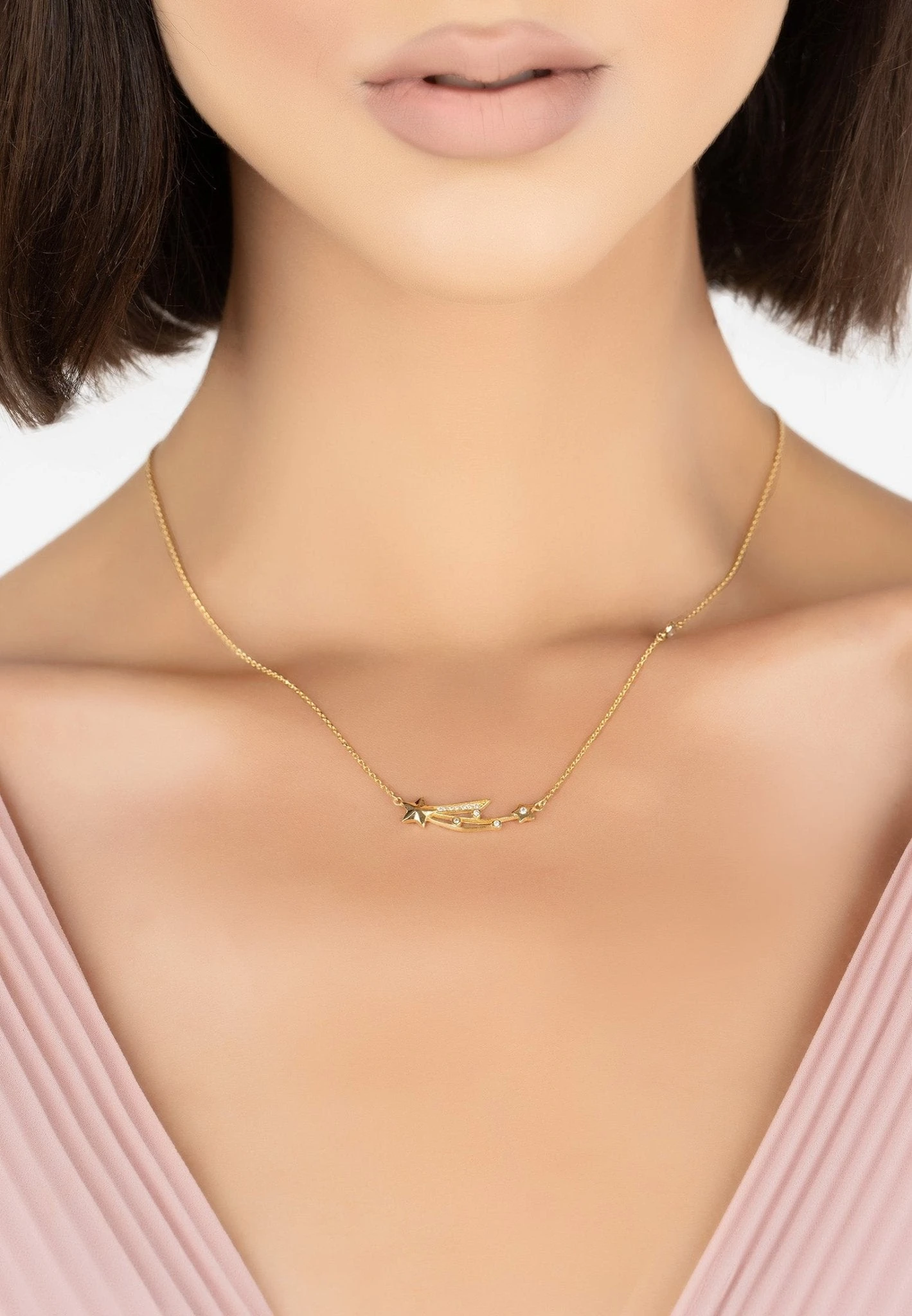 The motif of the shooting star necklace depicts two small zircon adorned stars shooting across the sky, suspended on a fine chain.