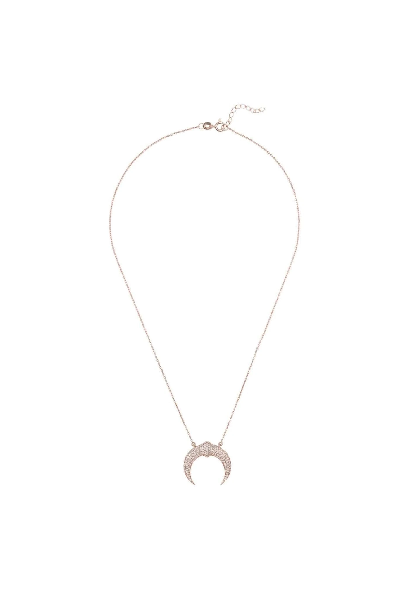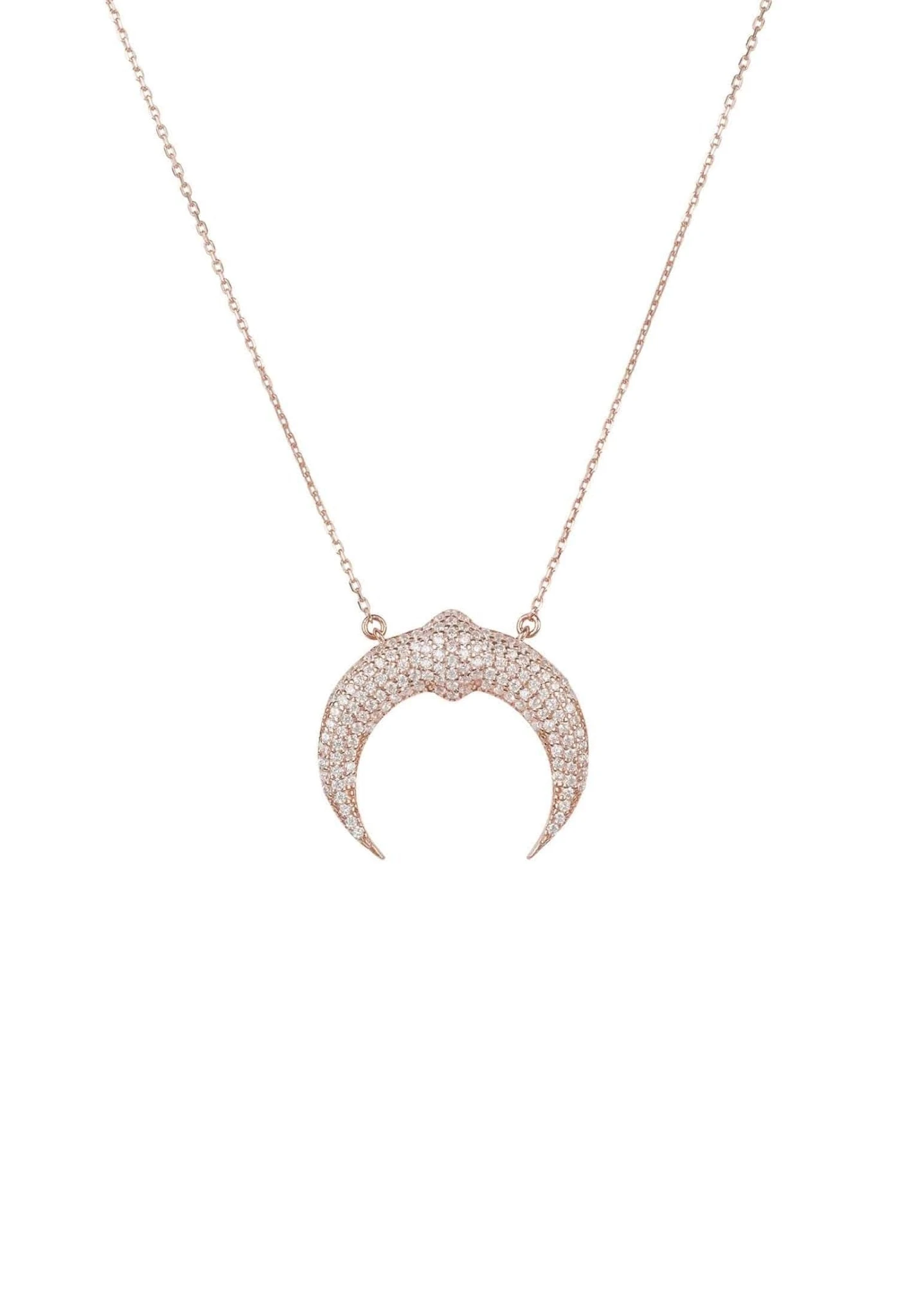 A sleek and ultra-chic sterling silver tusk pendant hand dipped in 22ct rosegold, is hand set with sparkling zircons that shimmer from day to night. Create a sophisticated look to any outfit.