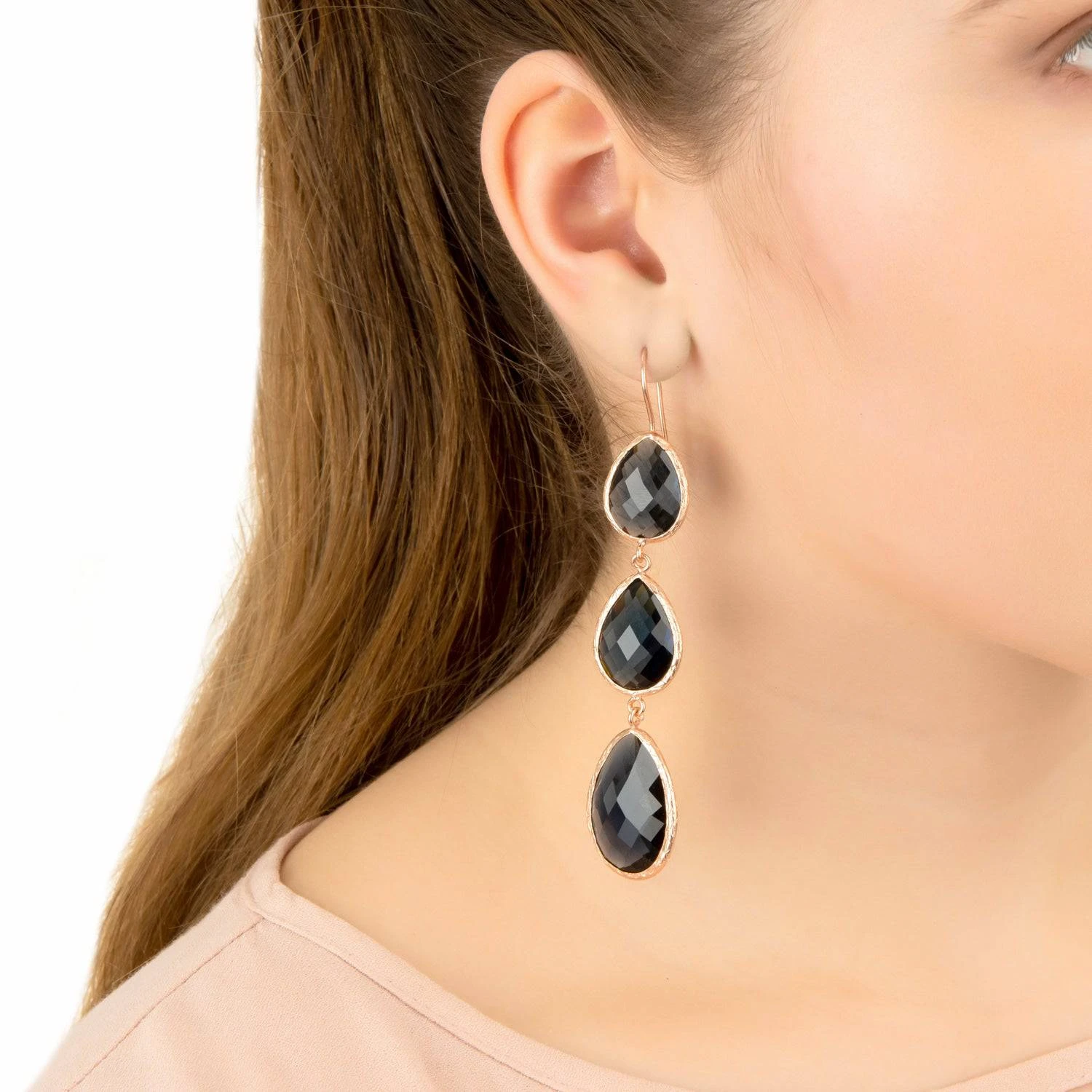 This stunning triple drop earring features graduated multi-faceted sapphire hydro crystals.
