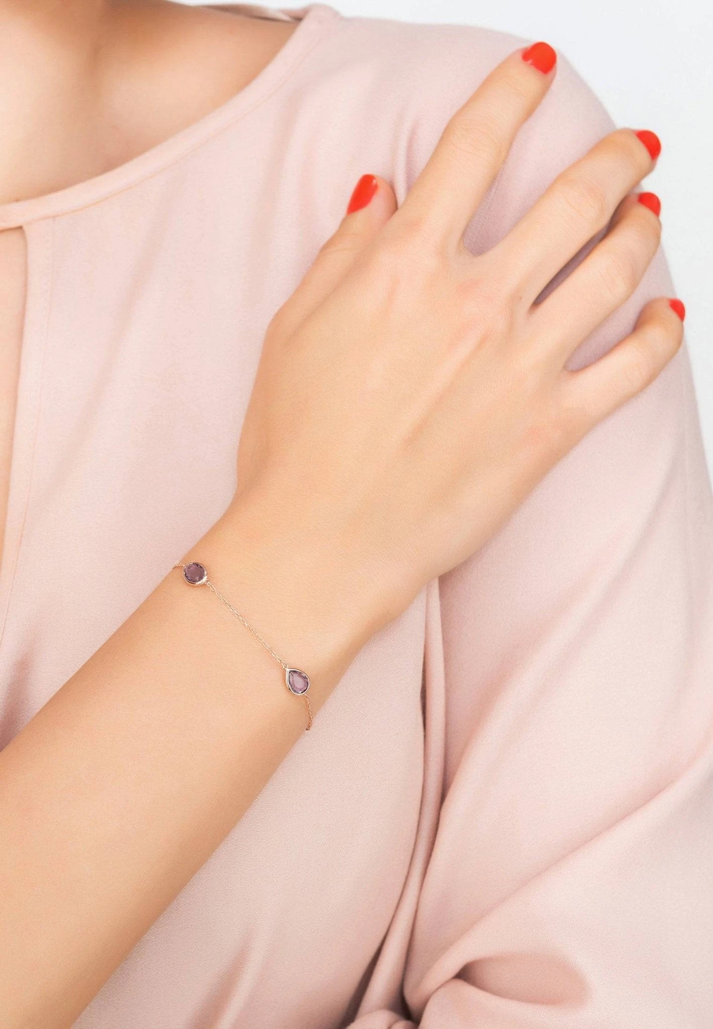 The bracelet has a lobster clasp and three stations to fit the majority of wrist sizes.