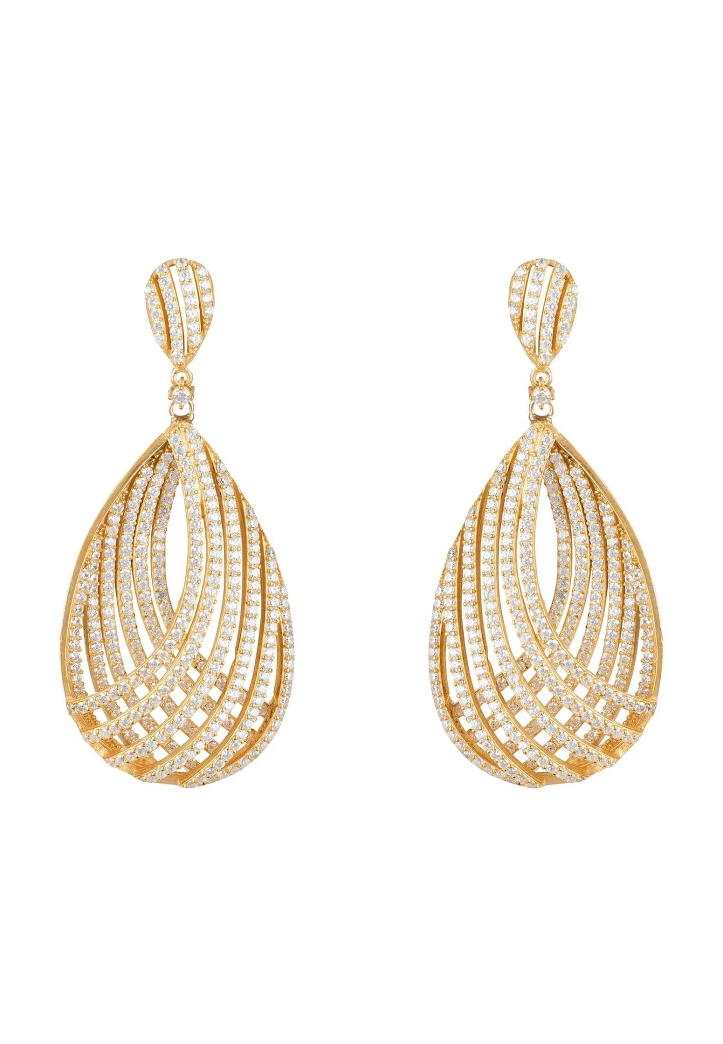 The Vortex Teardrop Earrings are simply stunning! Crafted from 925 sterling silver dipped in elegant gold, these earrings will make an exquisite addition to your jewellery collection. With intricate zircon detailing adding a touch of sparkle and glamour, this understated design is perfect for any special occasion or wedding day.Â
